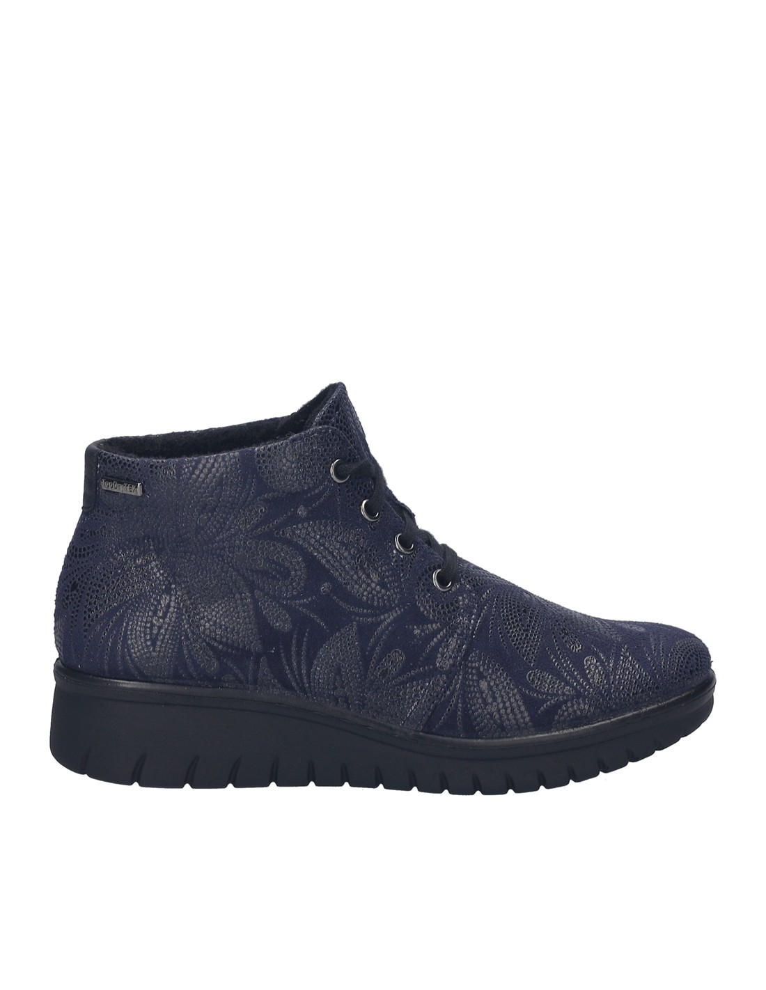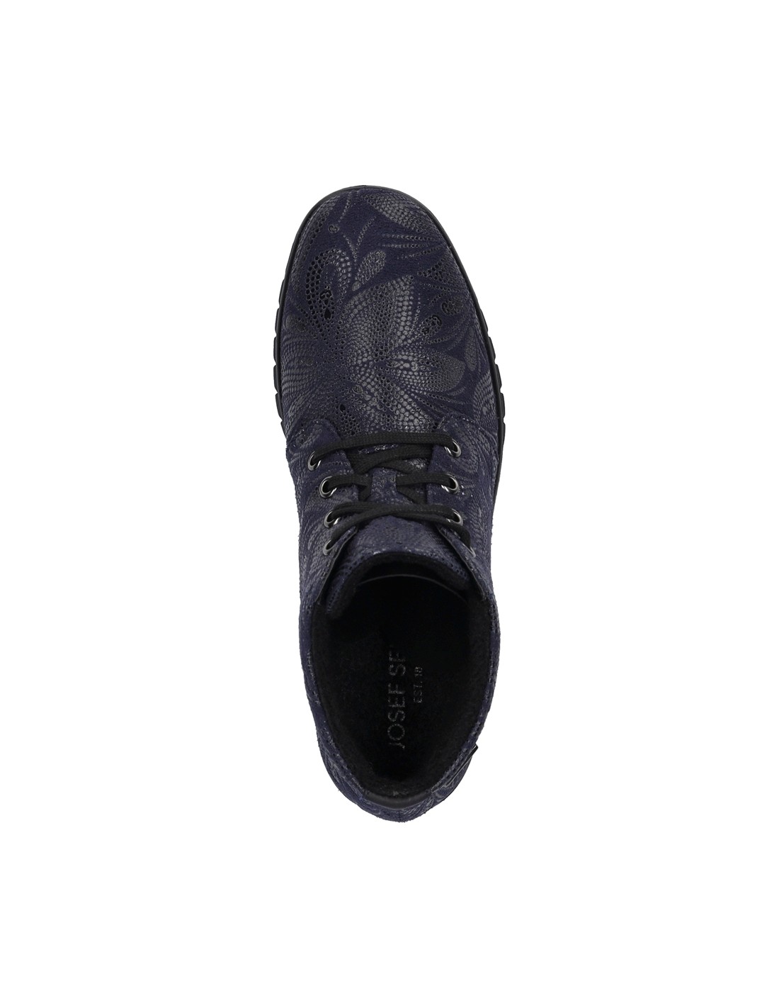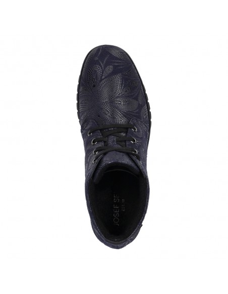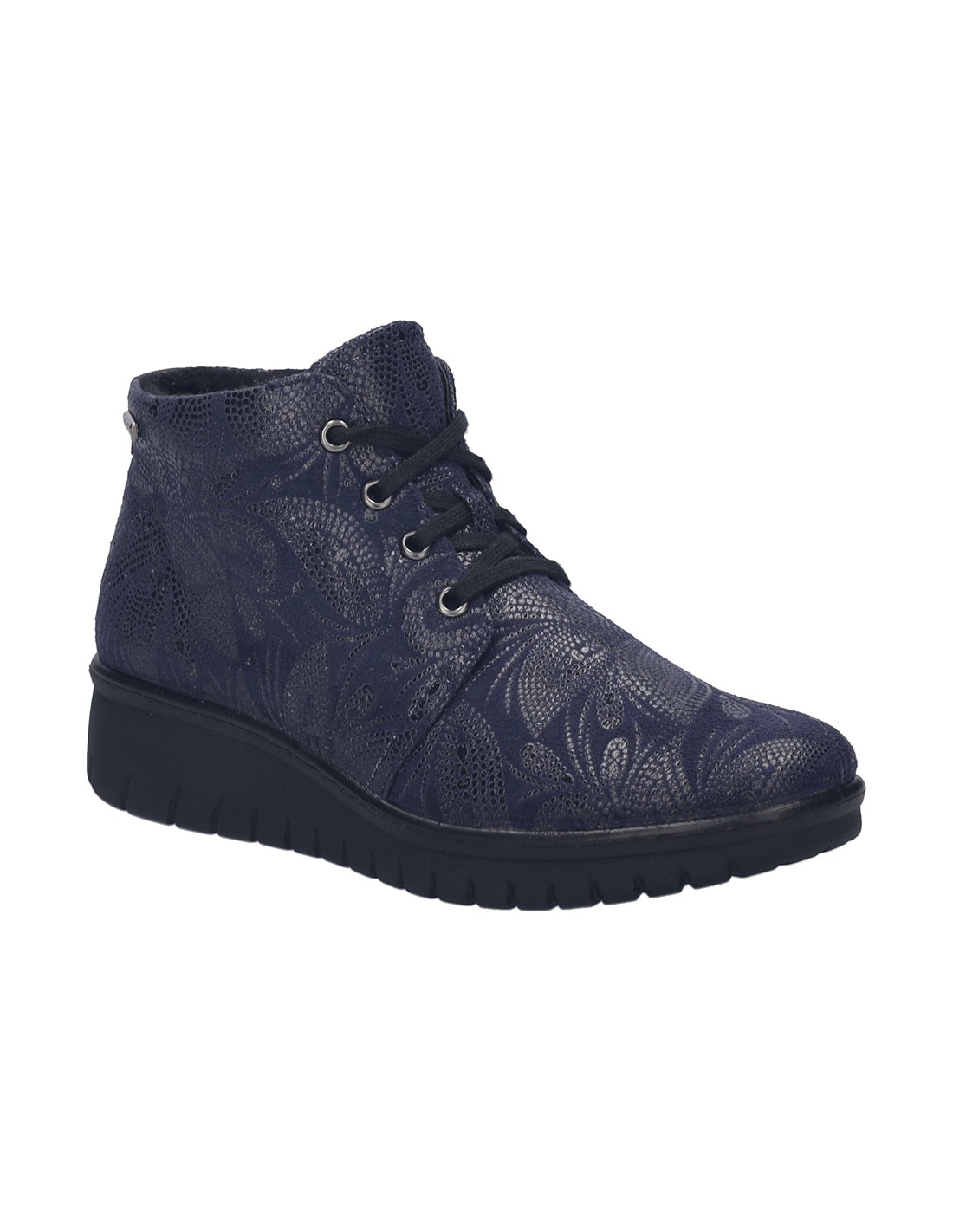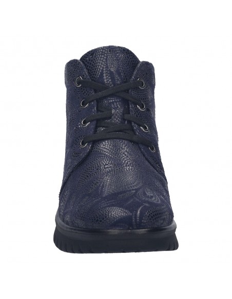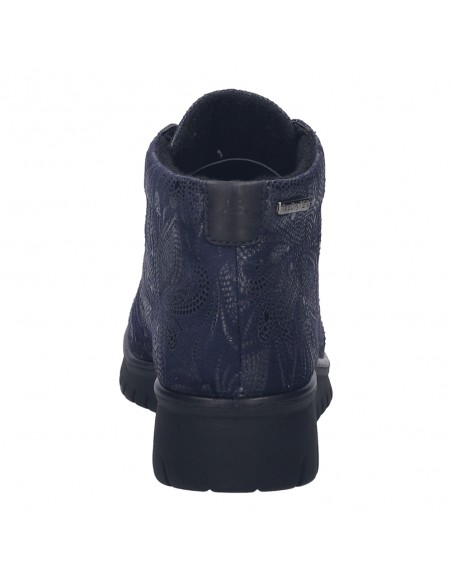 Descripción: Botín mujer Josef Seibel Calais-56 en suave microfibra azul estampada con membrana impermeable Top Dry tex, resistente al viento y transpirable. Plantilla extraible. Ajuste con cordones. Suela ligera y antideslizante.
