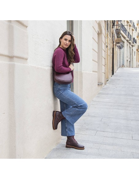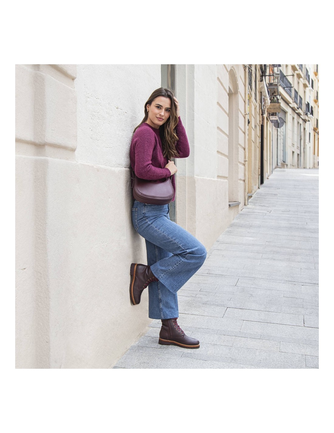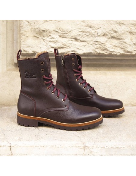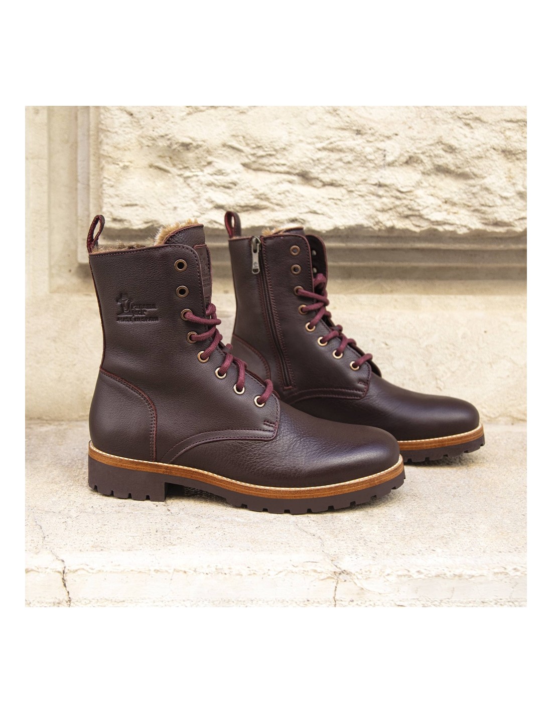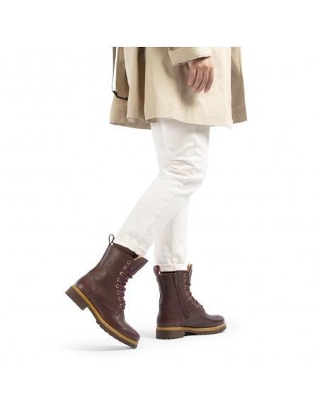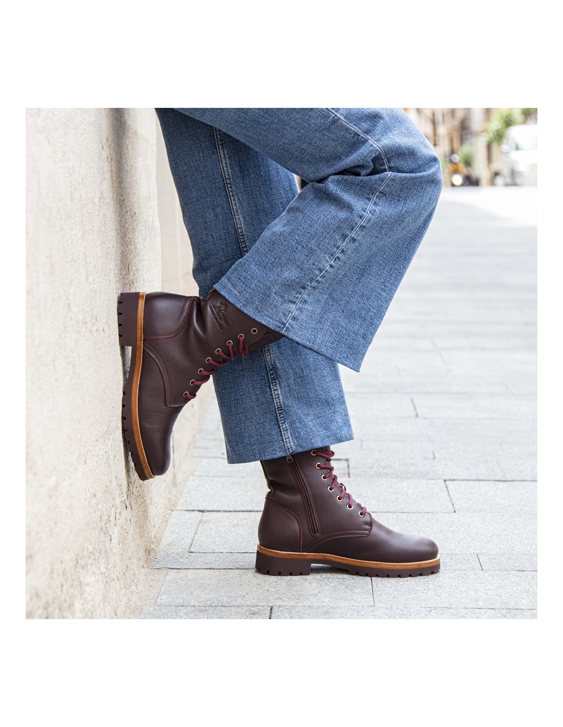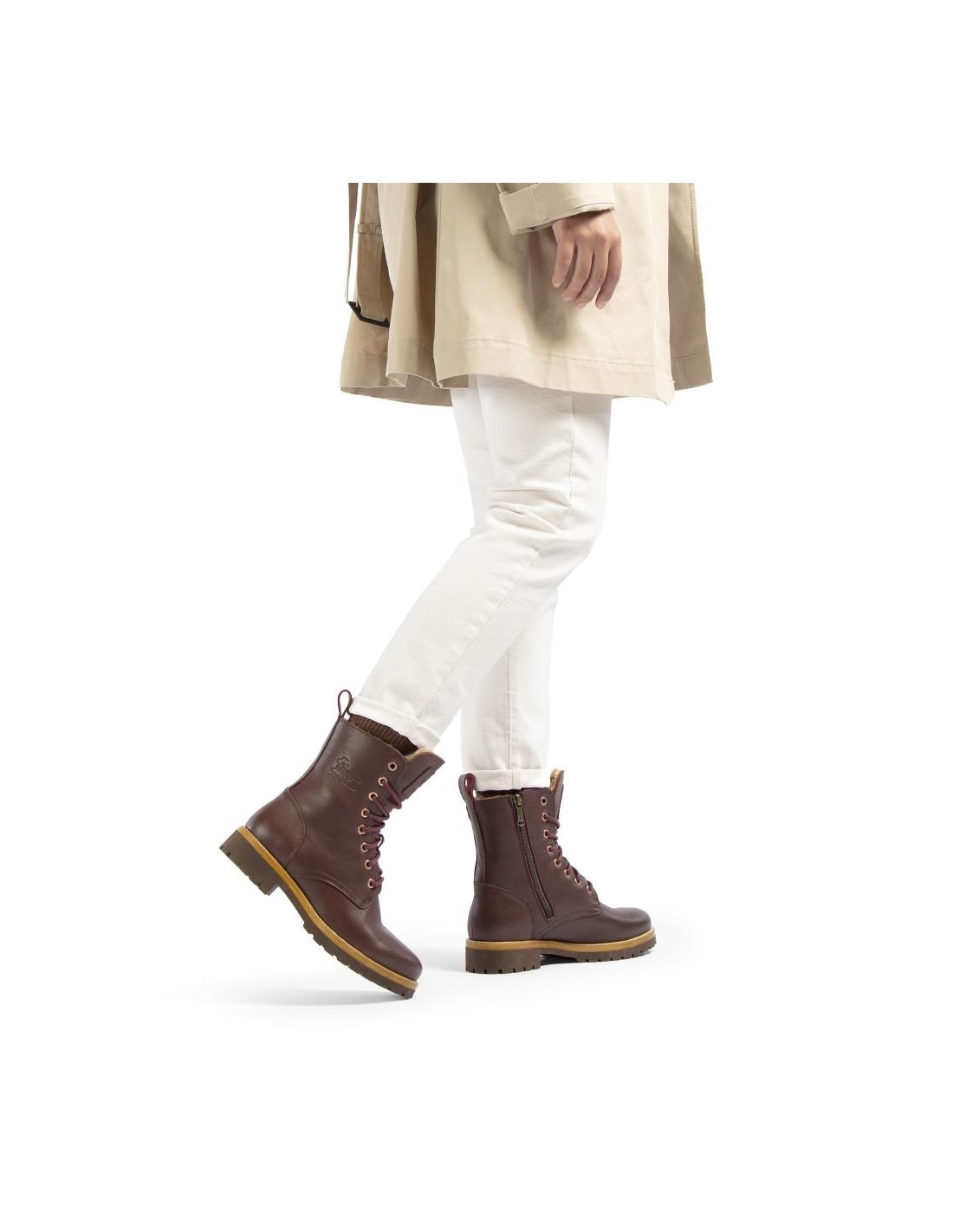 Descripción: Botín mujer de Panama Jack Frisia B19, en piel BURDEOS repelente al agua. Ajuste con cremallera. Forro cálido. Cómodo tacón con piso de plataforma de caucho con vira, flexible y antideslizante.