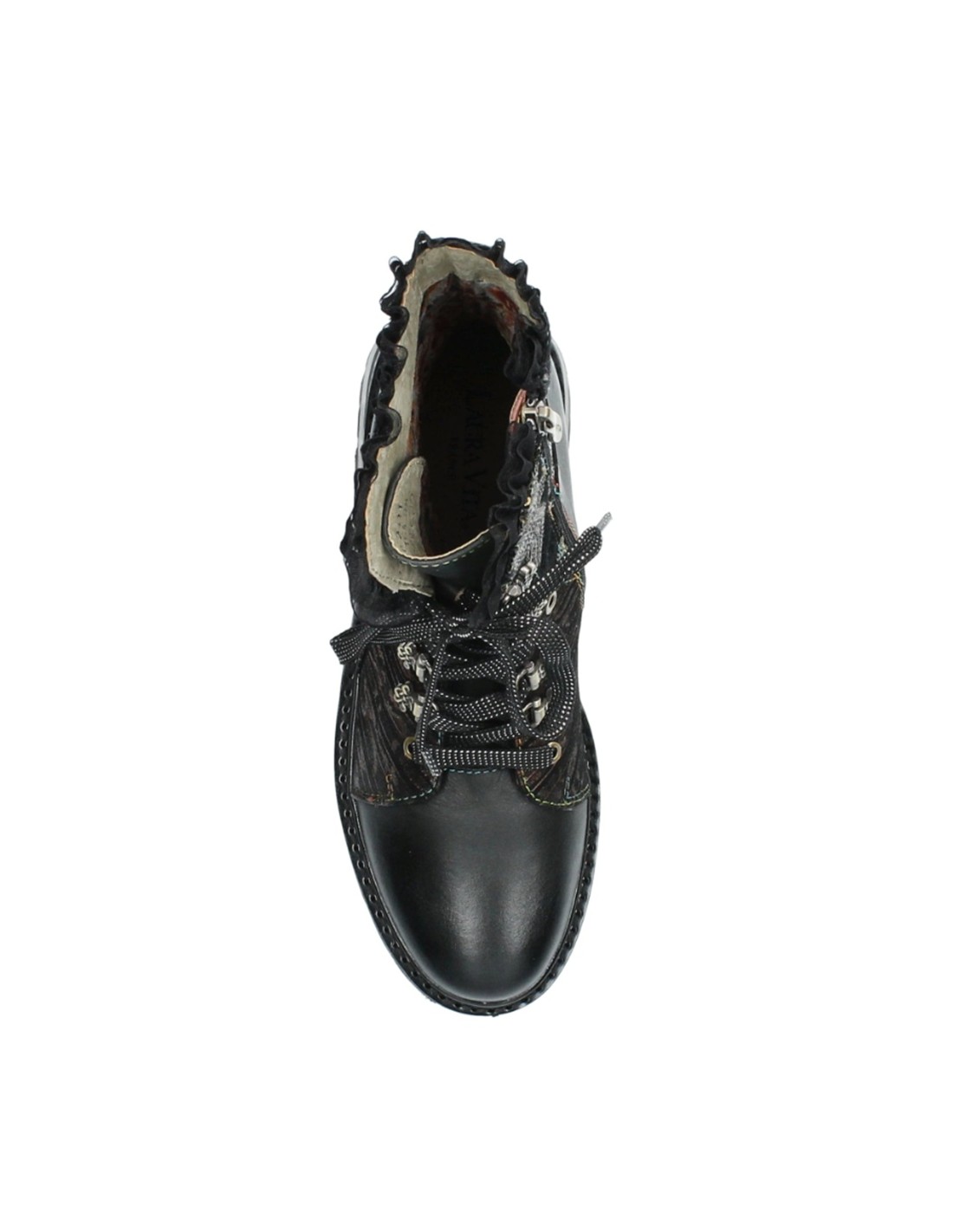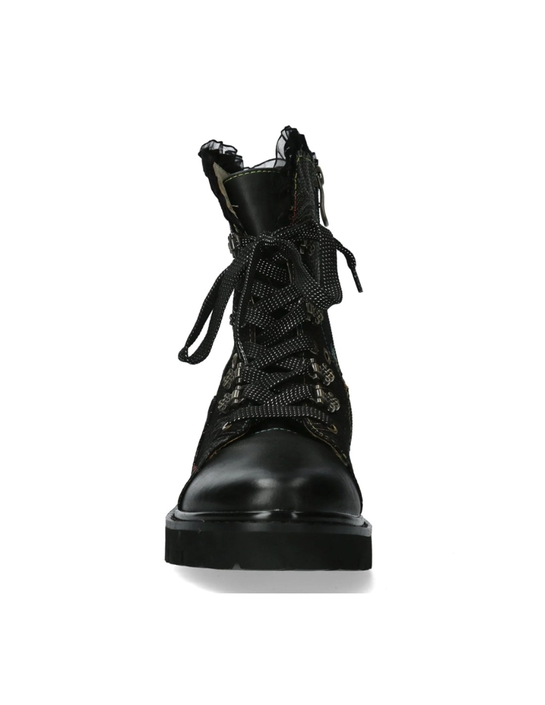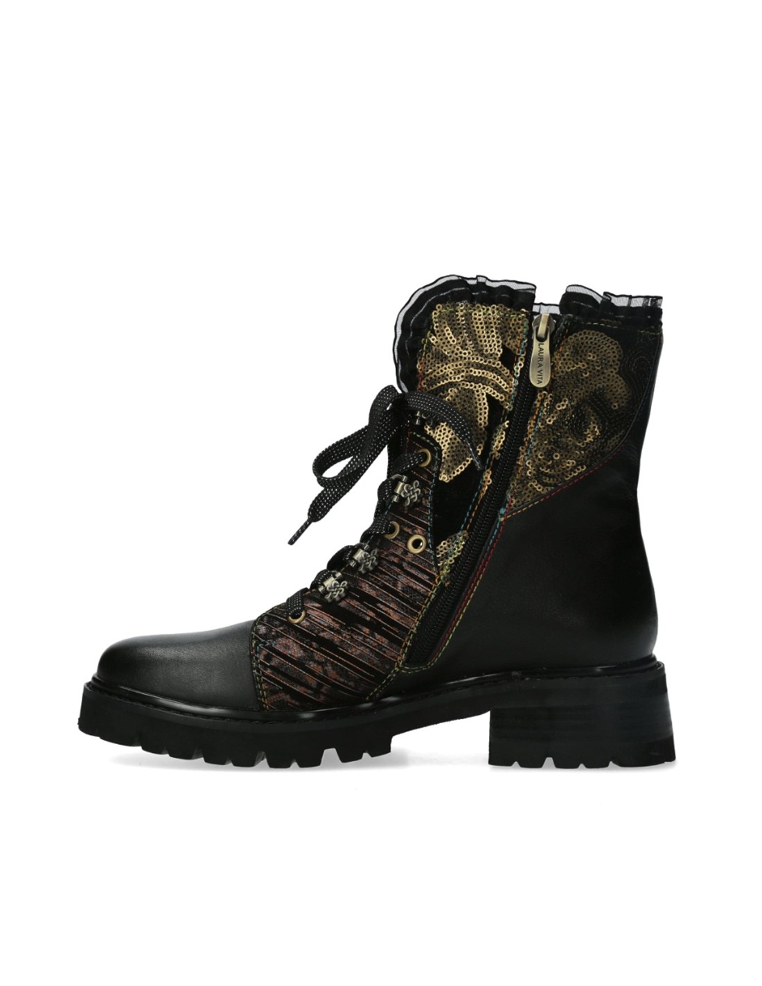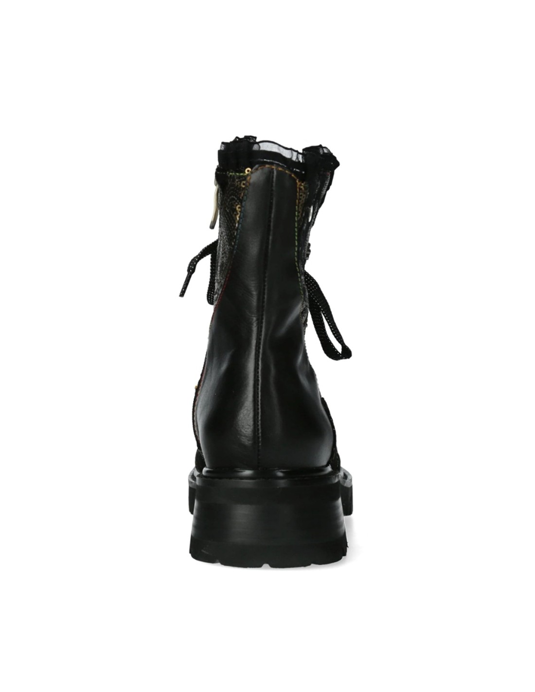 Descripción: Botín mujer Laura Vita KOULEO-66 en piel negra y detalles florales. Ajuste cremallera y cordón. Esta marca ofrece originalidad inspirada en la naturaleza y las artes, colorido nuevo cada temporada.