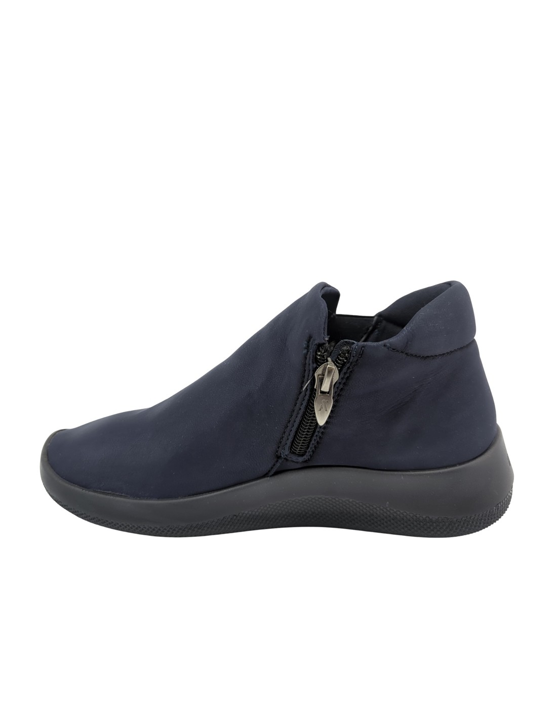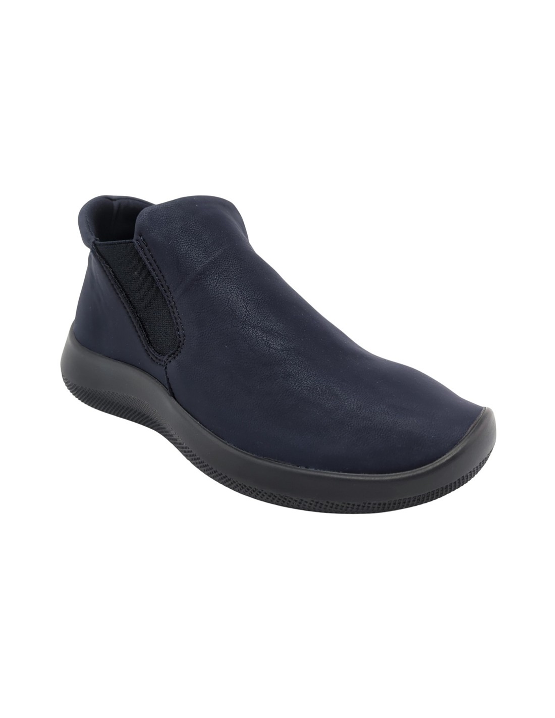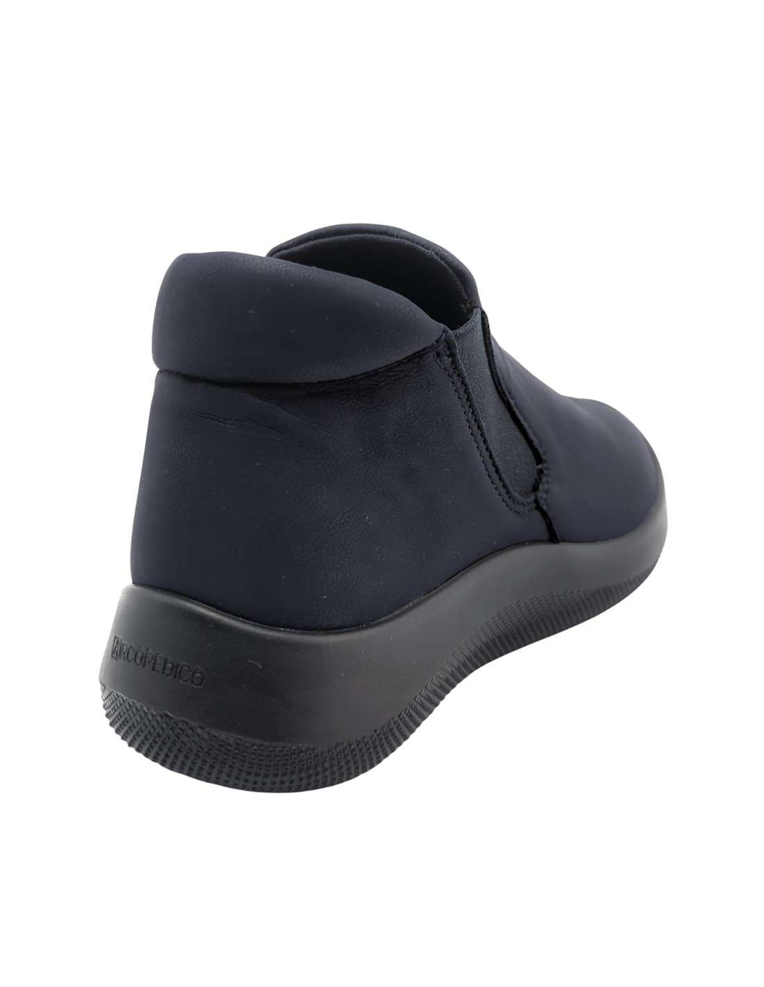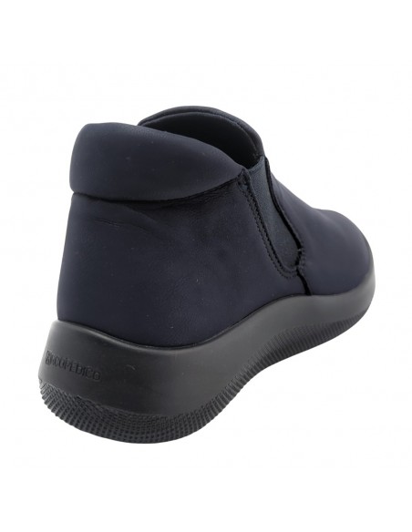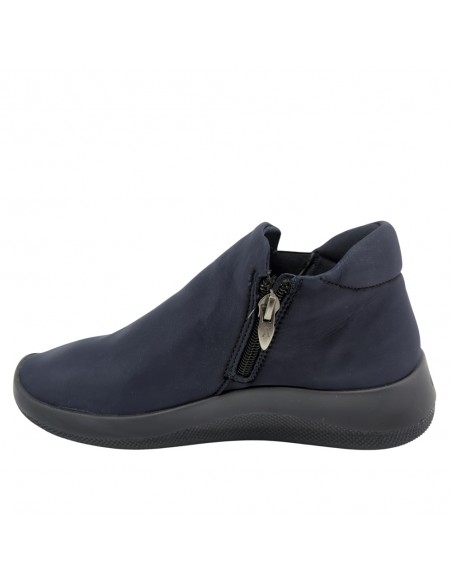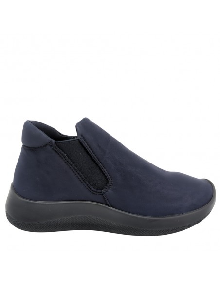 Descripción: Botín mujer Arcopedico LOUISE en licra elástica transpirable tipo nubuck azul, reciclada, vegana e hidrofugada. Ajuste elástico lateral. Suela PU orgánico súper ligero. Sistema Doble Arco plantar para mejorar el apoyo.
