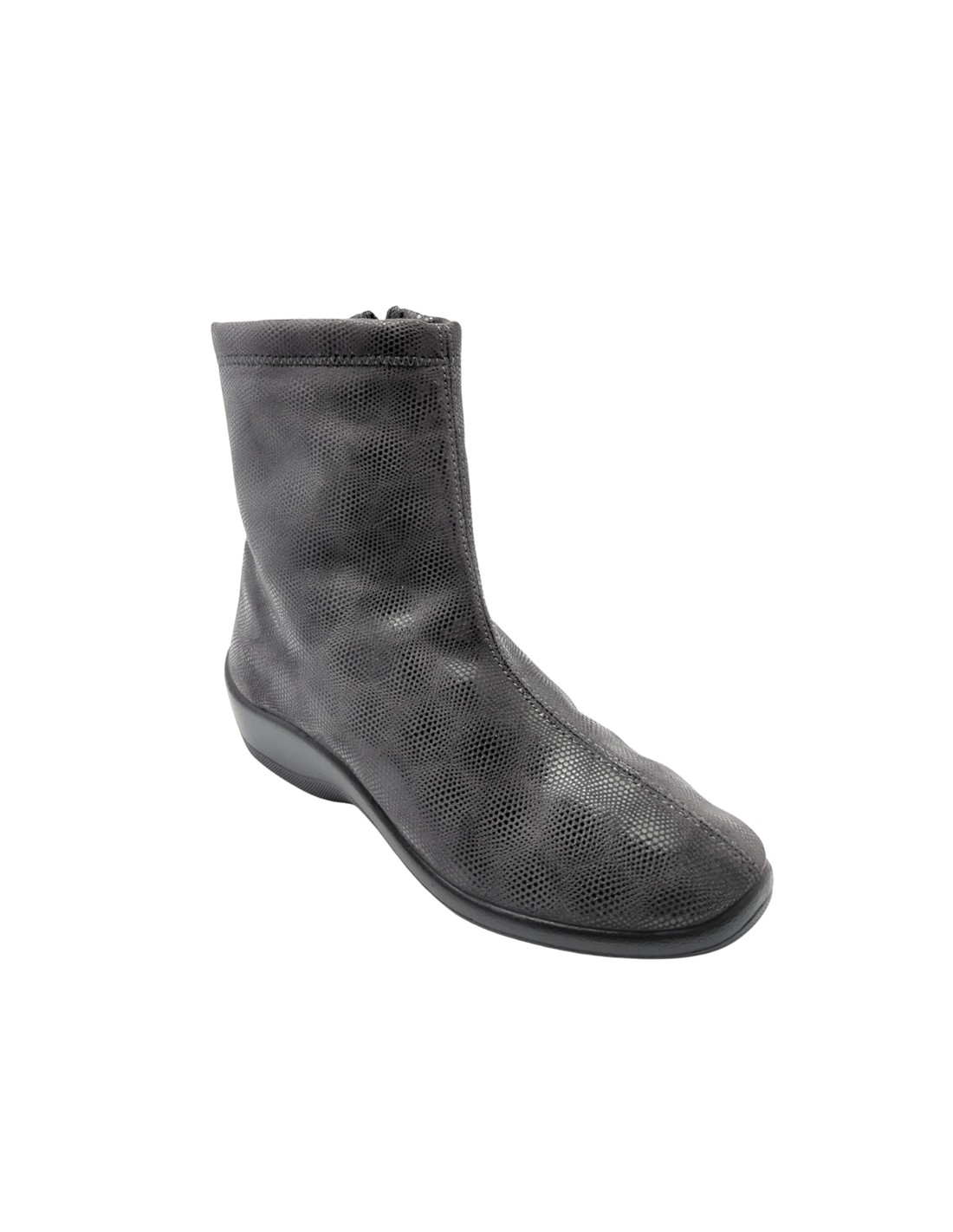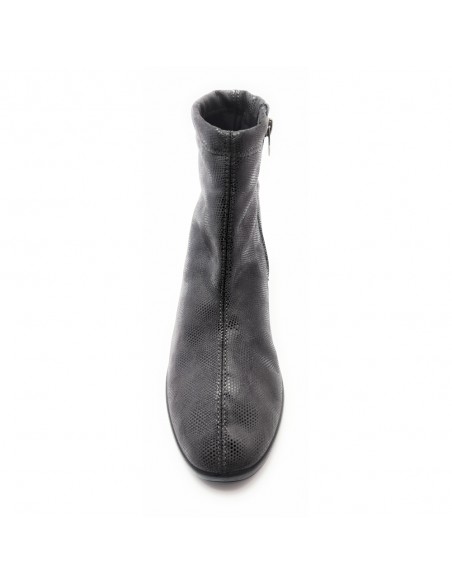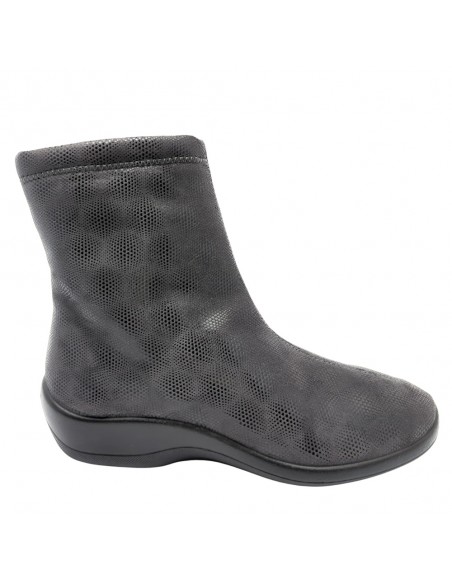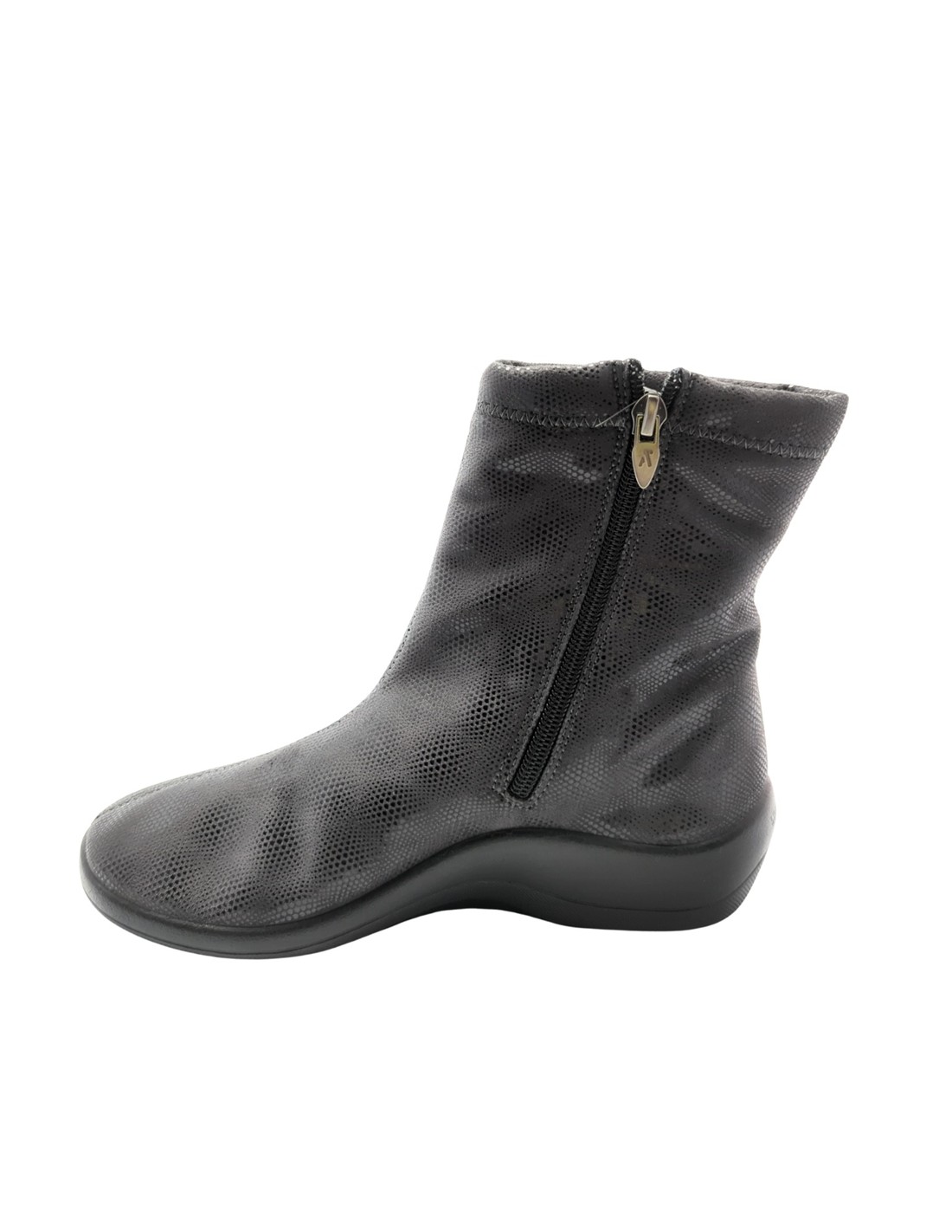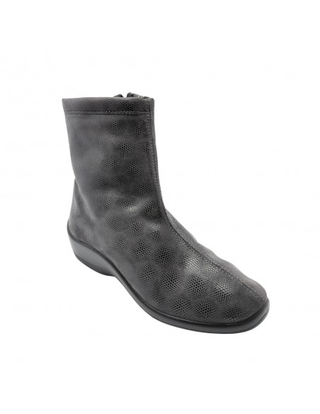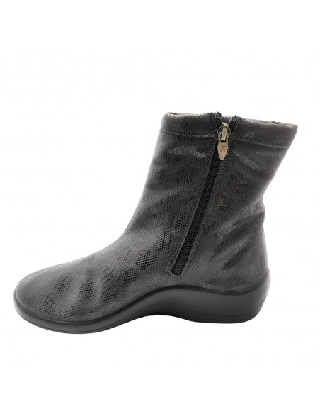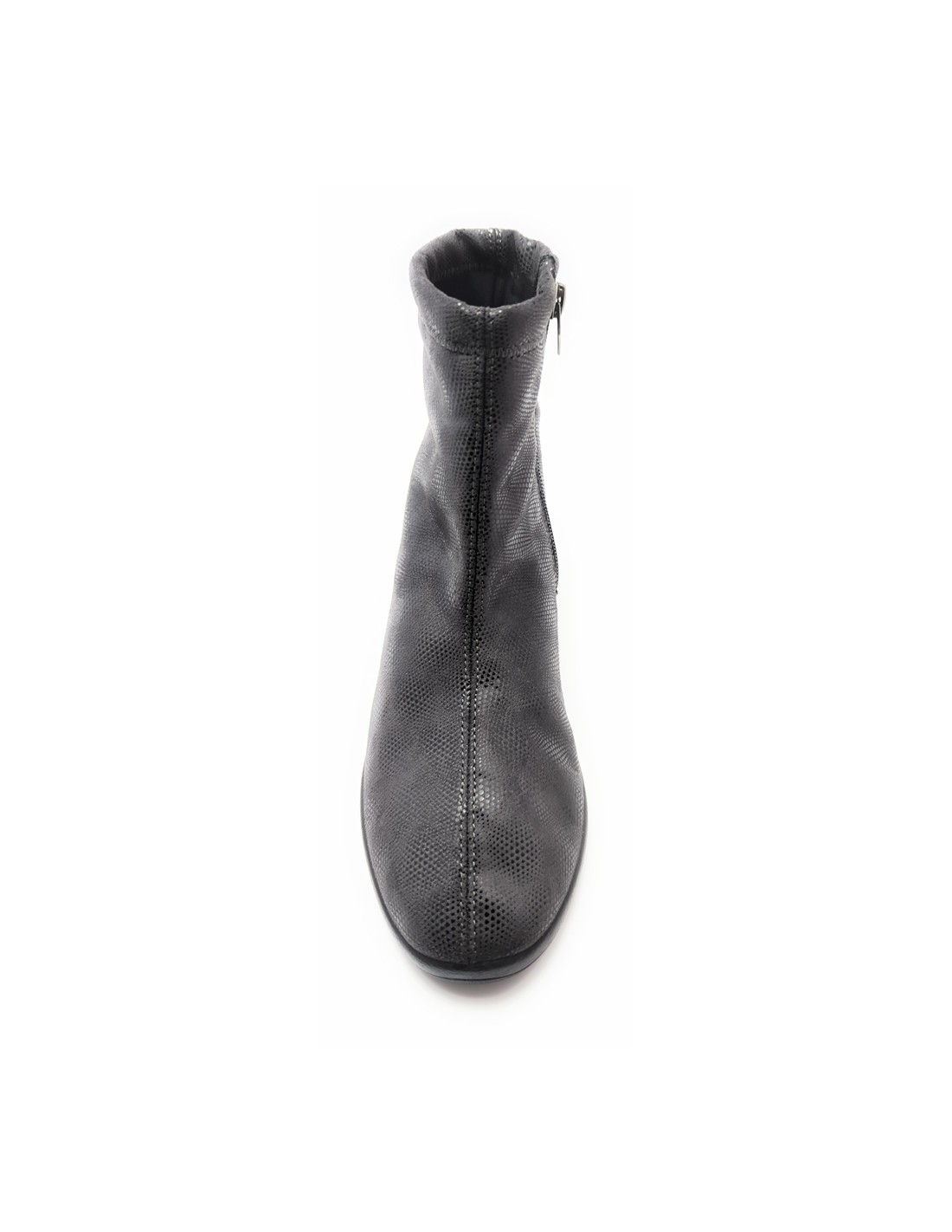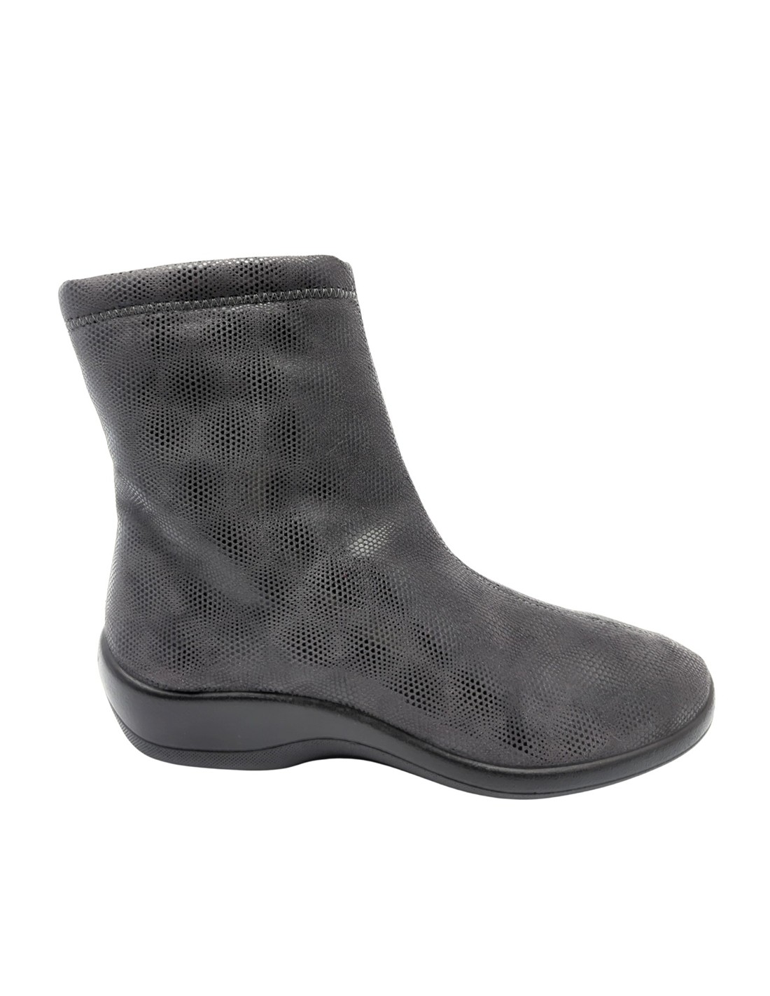 Descripción: Botín mujer Arcopedico JASPER de licra gris elástica con un toque metalizado, reciclada, vegana e hidrofugada. Ajuste cremallera. Piso de poliuretano inyectado con sistema de doble arco lateral para mejorar el apoyo.