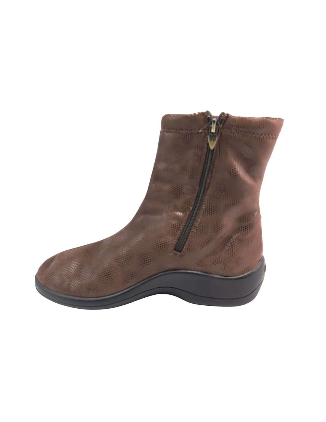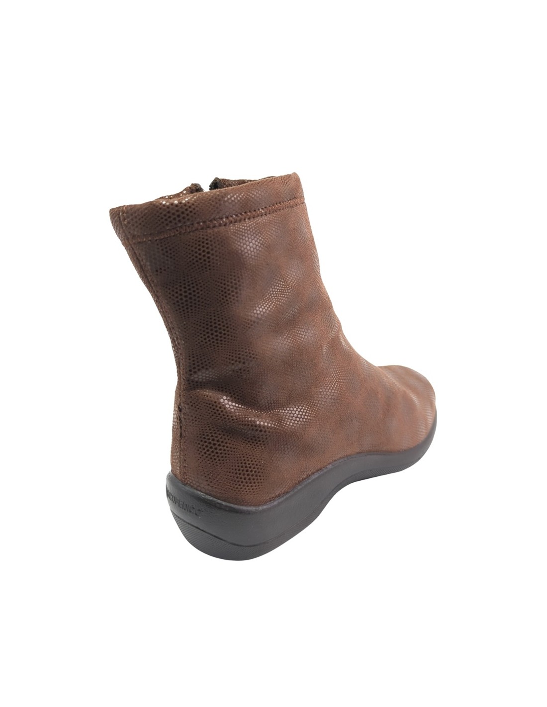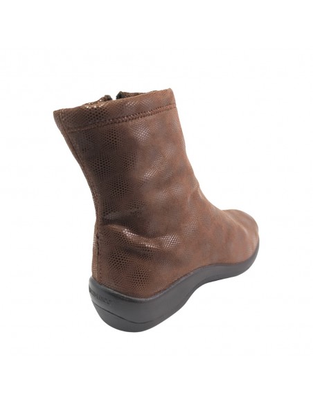 Descripción: Botín mujer Arcopedico JASPER de licra marrón elástica con un toque metalizado, reciclada, vegana e hidrofugada. Ajuste cremallera. Piso de poliuretano inyectado con sistema de doble arco lateral para mejorar el apoyo.