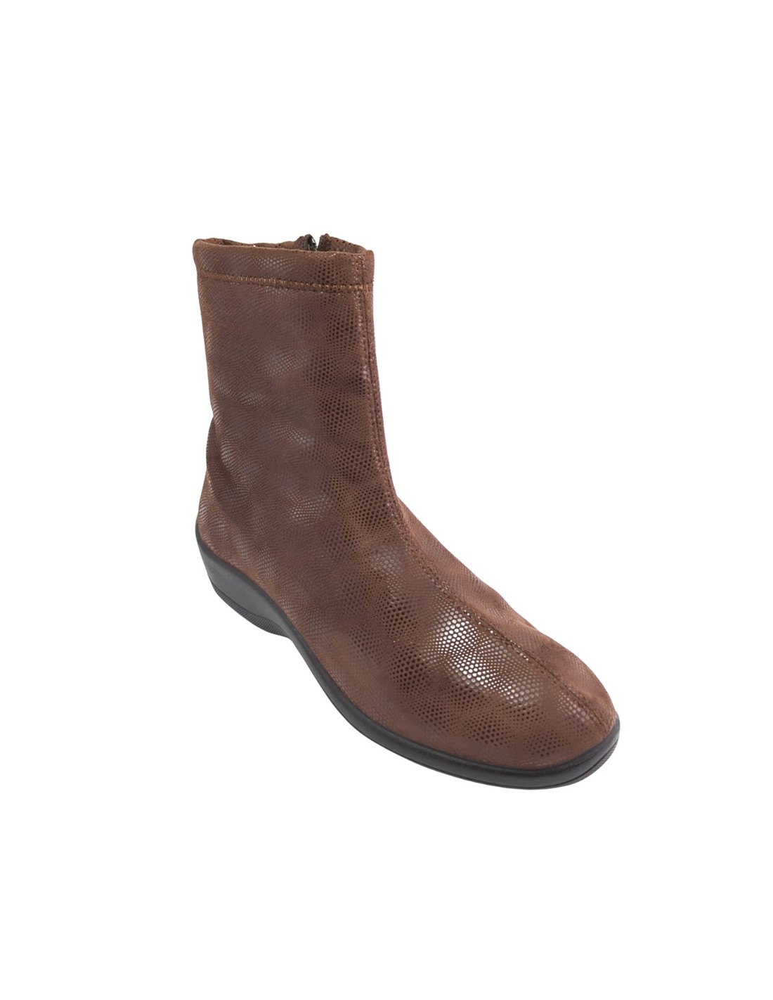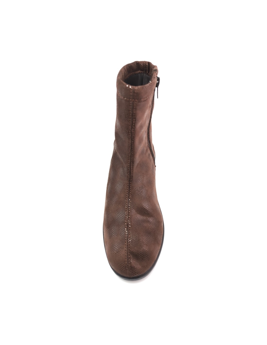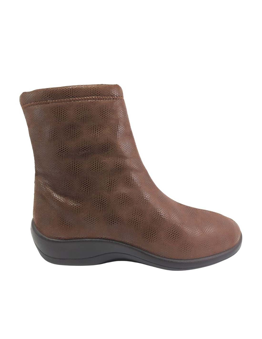 Descripción: Botín mujer Arcopedico JASPER de licra marrón elástica con un toque metalizado, reciclada, vegana e hidrofugada. Ajuste cremallera. Piso de poliuretano inyectado con sistema de doble arco lateral para mejorar el apoyo.