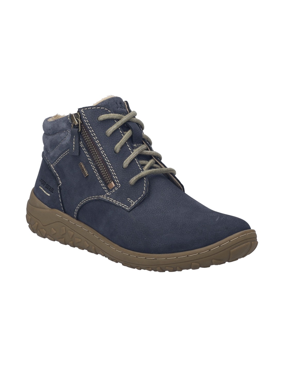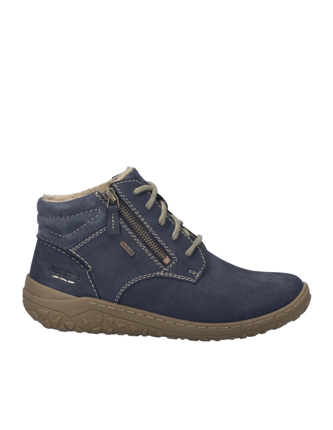 Descripción: Botín mujer JOSEF SEIBEL Ruby-54 de piel azul. Línea ecológica Spirit of Nature. Membrana Impermeable Top Dry Tex, resistente al viento y transpirable. Plantilla móvil. Piso ligero antideslizante.