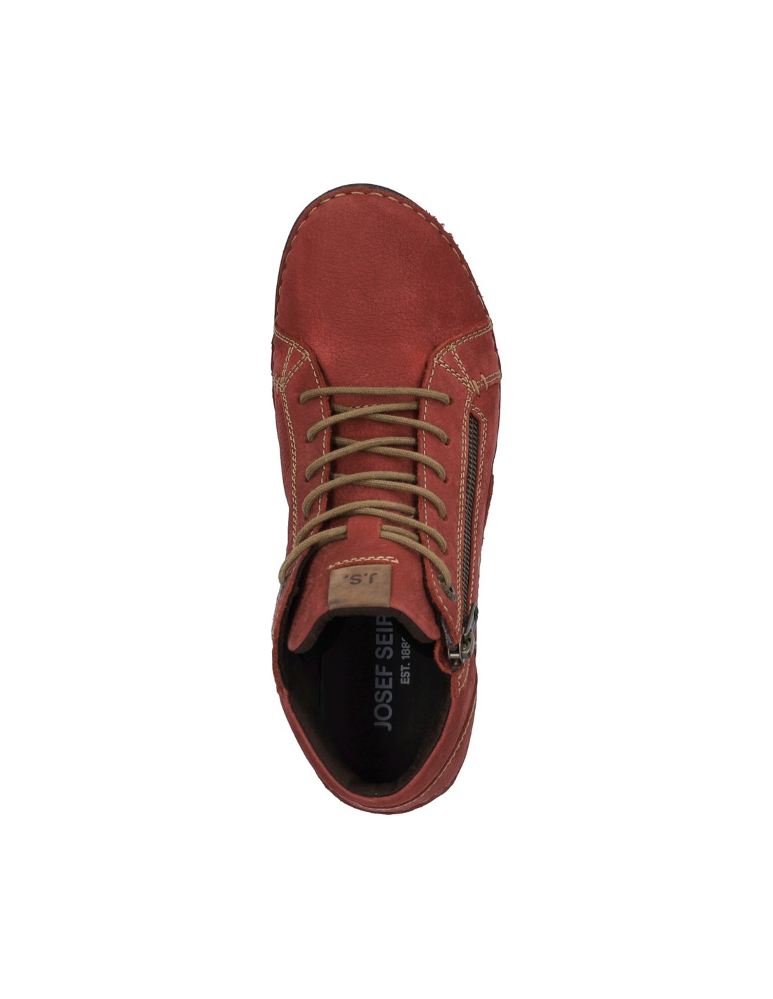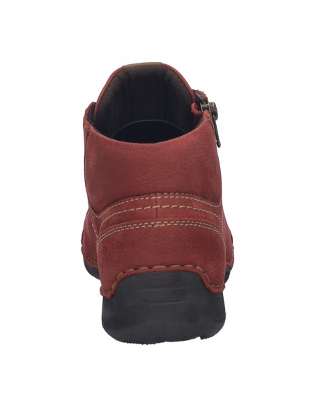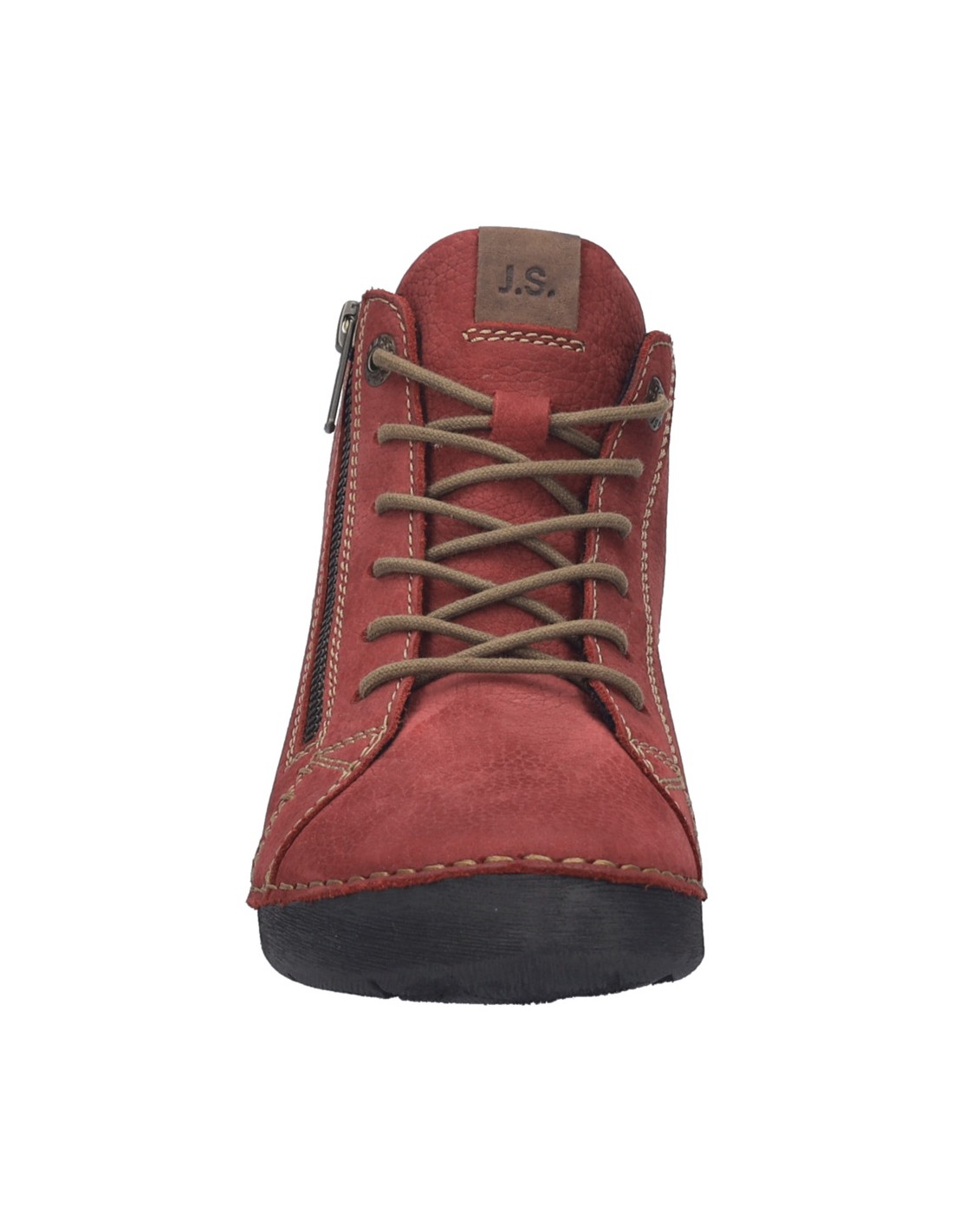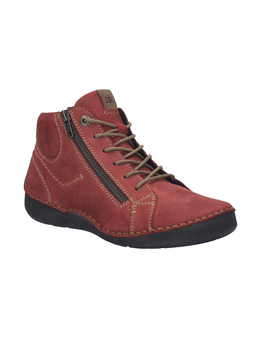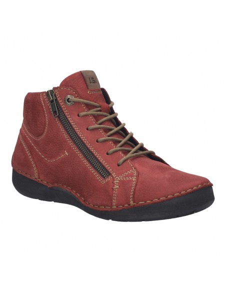 Descripción: Botín mujer FERGEY-67 de la línea ecológica Spi rit Of Nature Josef Seibel, en piel natural roja. Ajuste con cordones y cremallera. Planta anatómica móvil. Piso ligero, aislante y flexible.