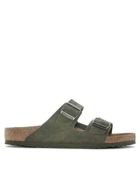 Descripción: Cómoda chancla BIO para hombre de Birkenstock. Clásico modelo ARIZONA LINEA VEGANA tono kaki. Ajuste con hebillas. Planta anatómica que recoge cómodamente el pie. Piso EVA antideslizante.