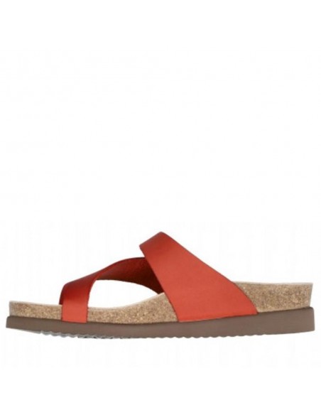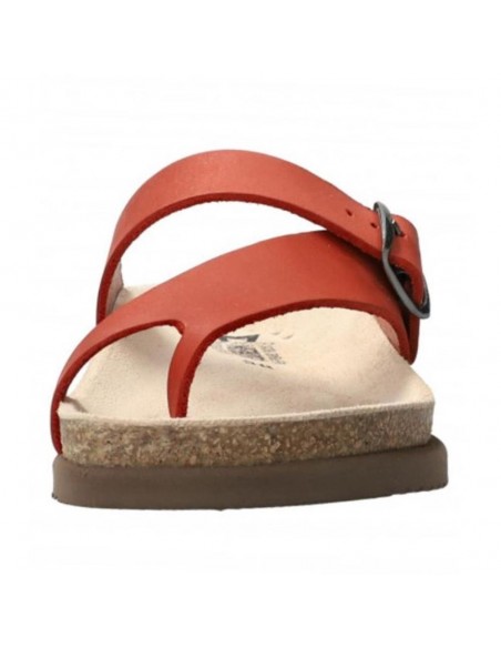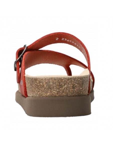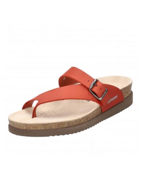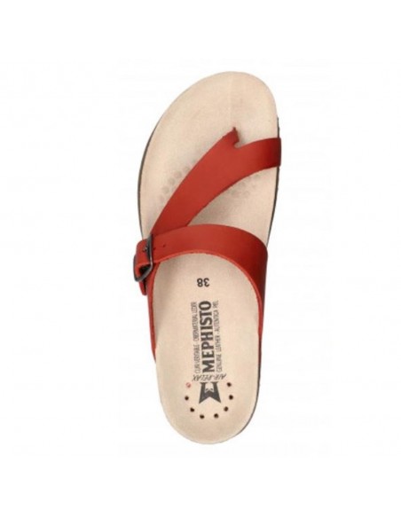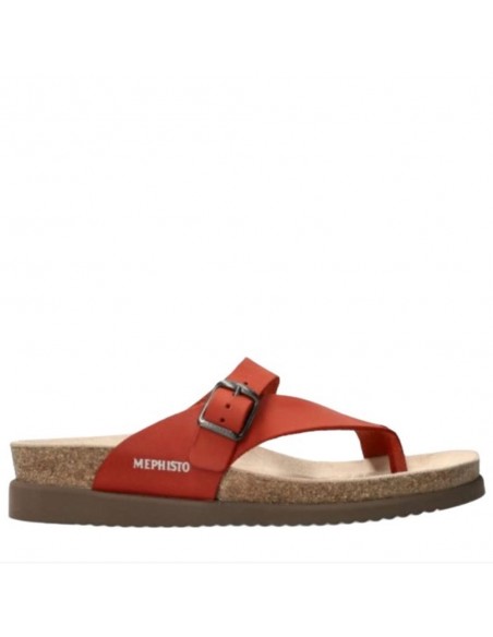 Descripción: Chancla entre dedos HELEN de MEPHISTO en piel roja con hebilla ajustable. Cuña Air-Relax de corcho y latex 100% natural. Plantilla anatómicamente diseñada para proteger el pie y que se adapte de forma DEL PIE.