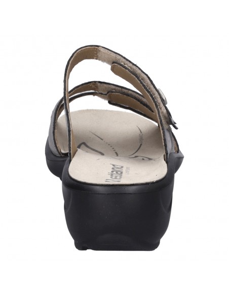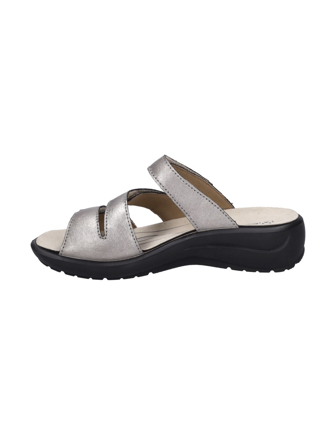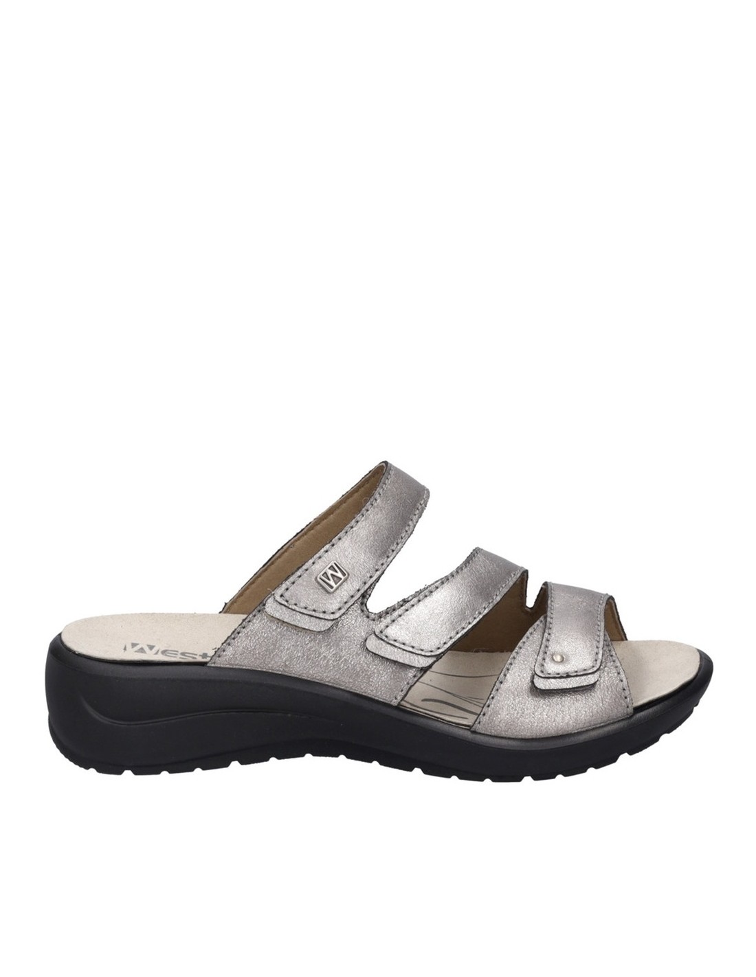 Descripción: Chancla mujer Westland by Josef Seibel ANNECY-04 en piel metalizada platino. Tiras ajustables con velcro. Plantilla extraible anatómica y acolchada. Cómoda cuña ligera de poliuretano antideslizante.