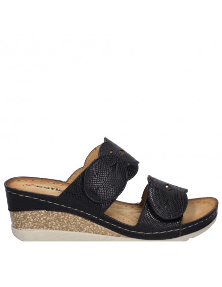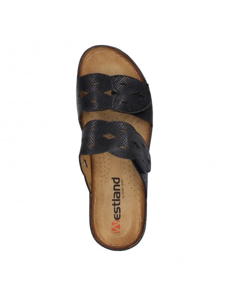 Descripción: Chancla mujer Westland by Josef Seibel SAVOIE-03 en suave tejido negro perforado con tiras ajustables con velcro. Plantilla anatómica. Cómoda cuña ligera, flexible y antideslizante.