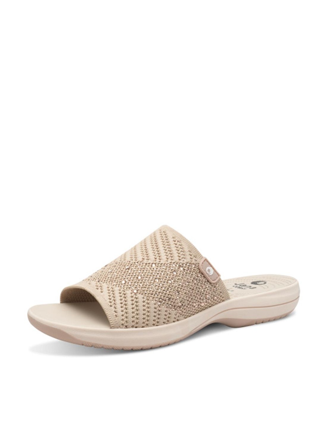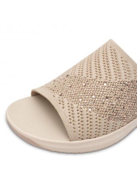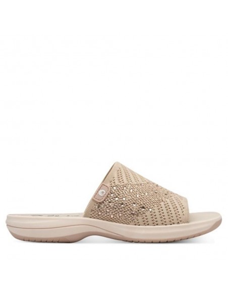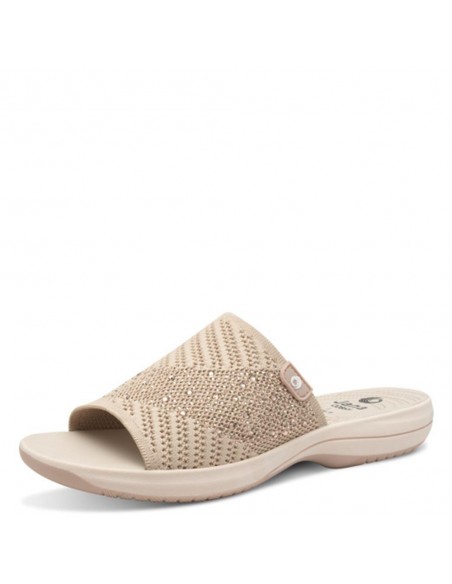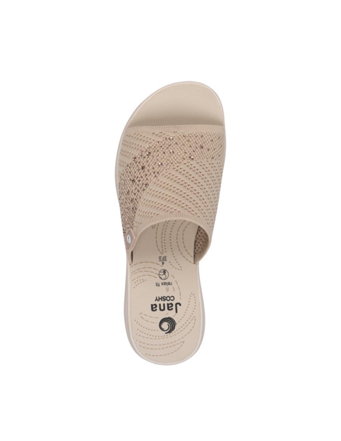 Descripción: Cómoda sandalia mujer de JANA 28769 en suave tejido elástico beig con pedrería,que se adapta al pie pero también queda sujeto. Planta anatómica acolchada. Cuña ligera, flexible y antideslizante.