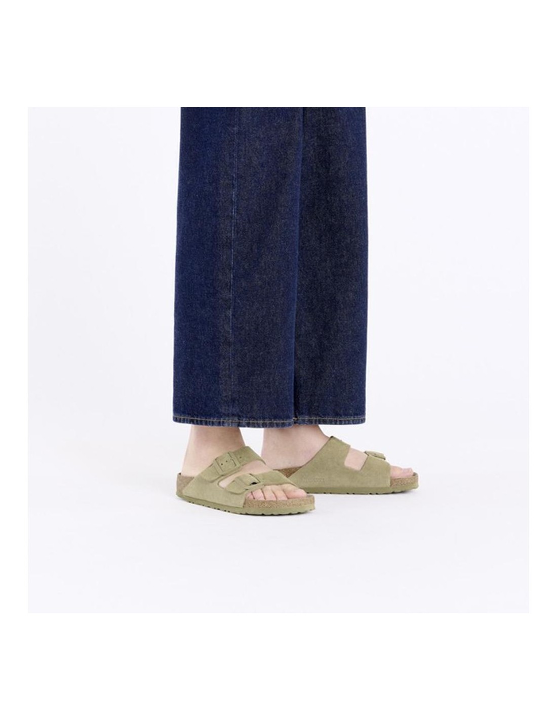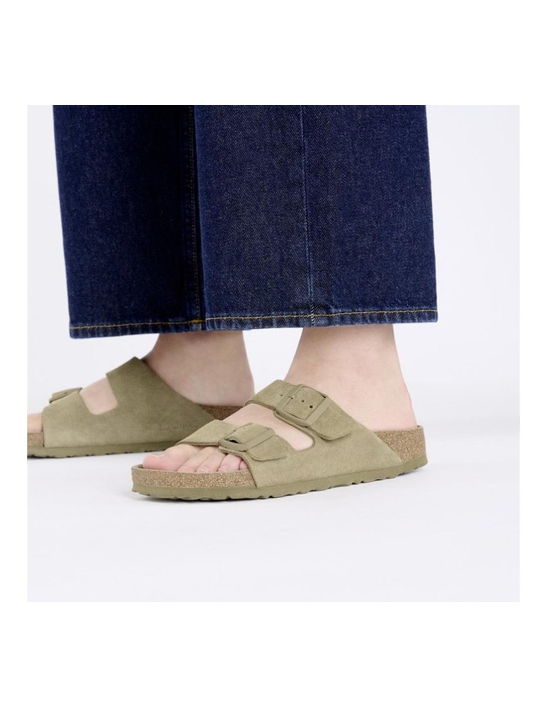 Descripción: Cómoda chancla BIO mujer de Birkentock. Clásico modelo Arizona nubuck kaki y talle hebillas al tono. Horma estrecha. Planta anatómica que recoge a la perfección la silueta del pie. Piso de EVA ligero y antideslizante.