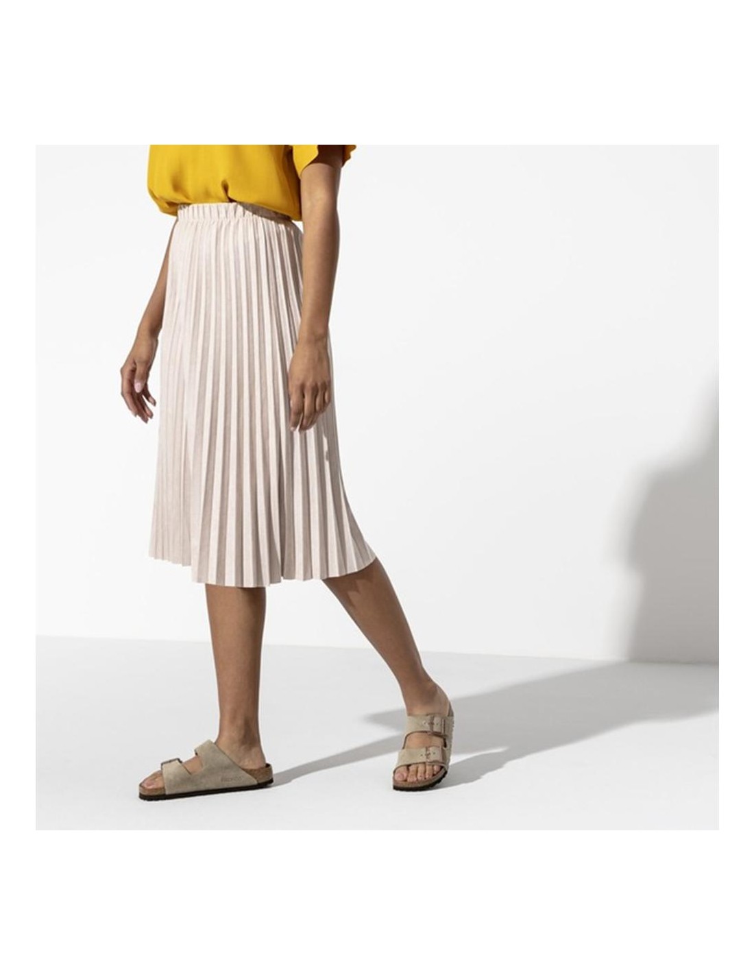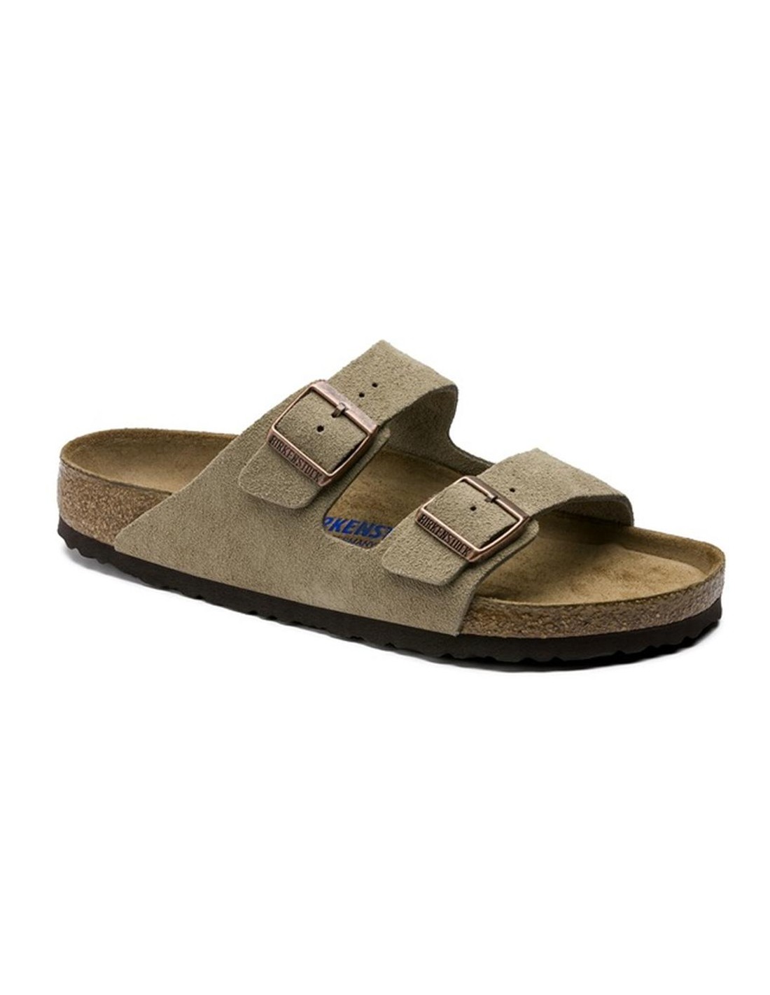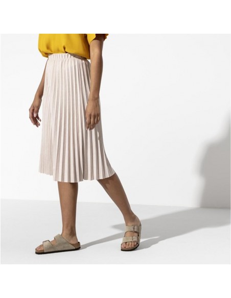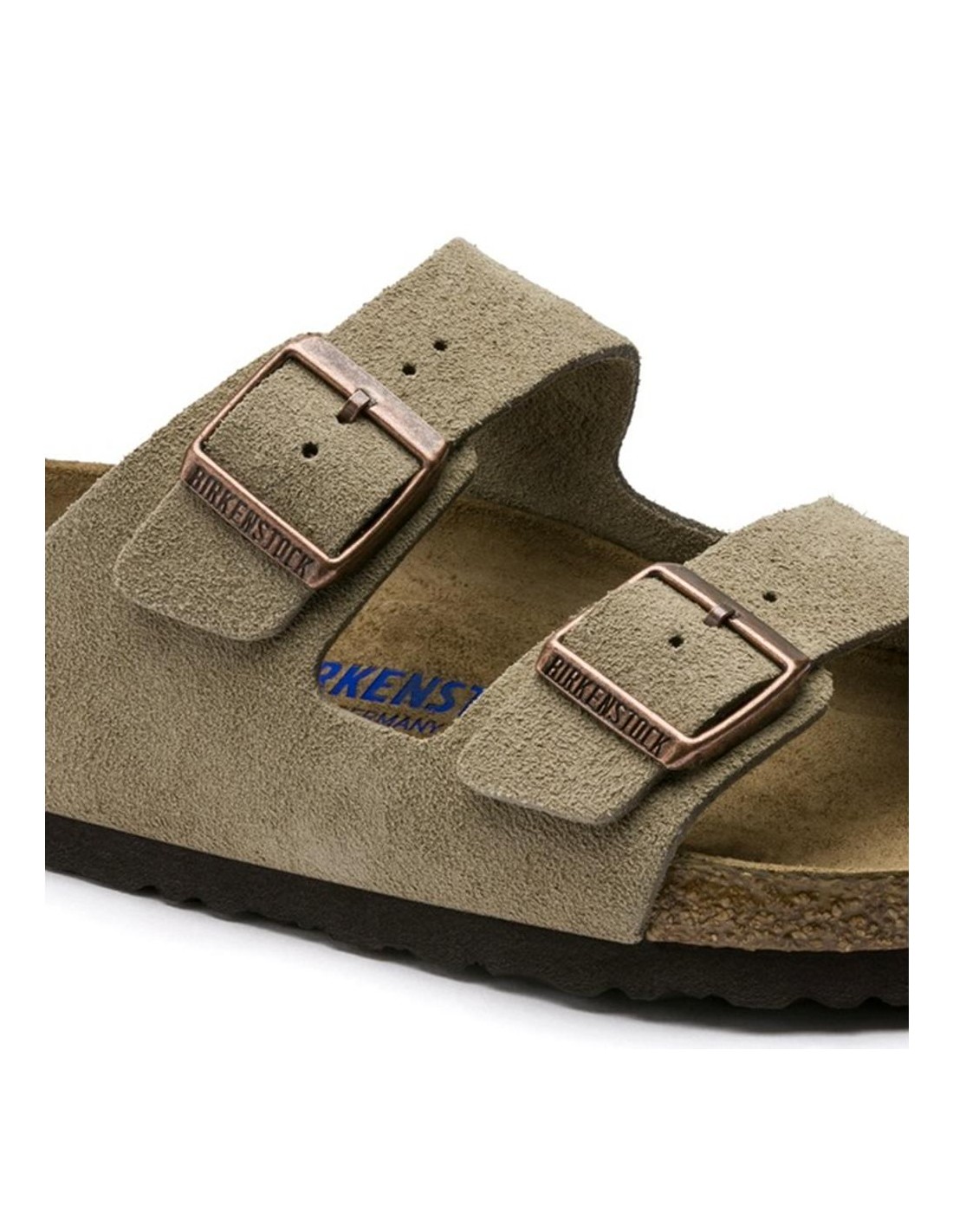 Descripción: Cómoda chancla BIO mujer de Birkentock. Clásico modelo Arizona nubuck taupe y detalle hebillas bronce. Horma estrecha. Planta anatómica que recoge a la perfección la silueta del pie. Piso de EVA ligero