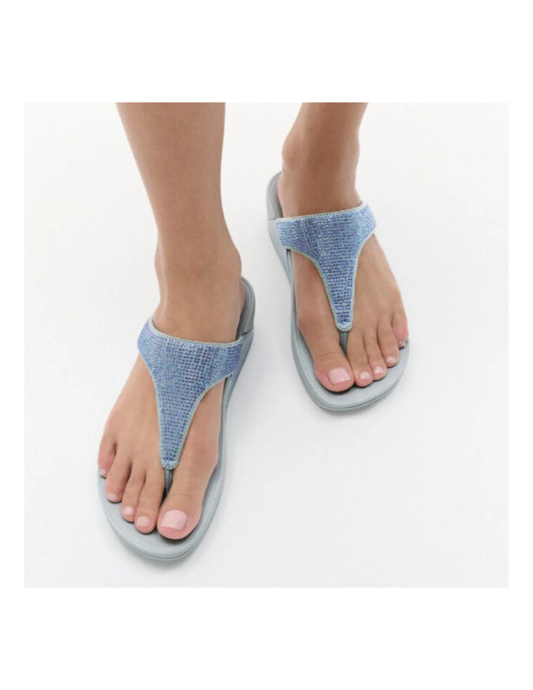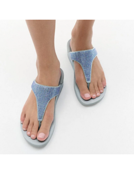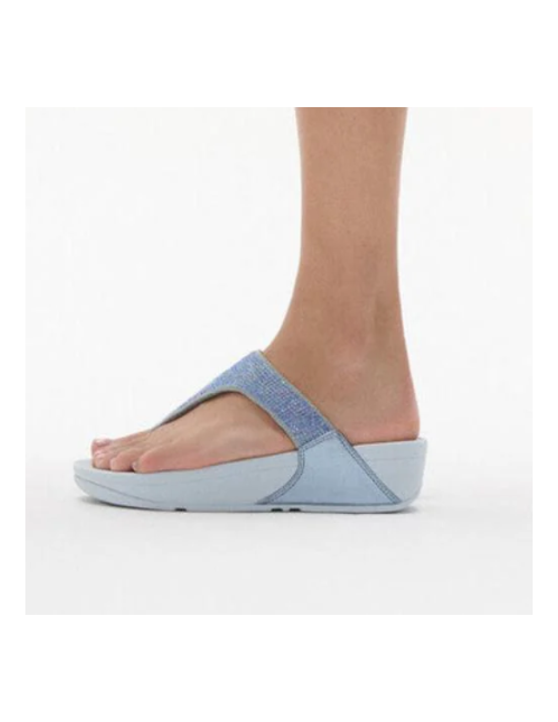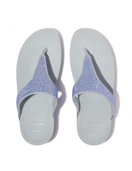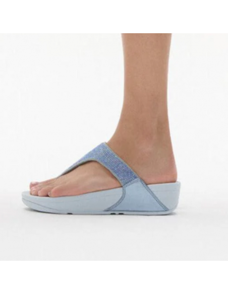 Descripción: Cómoda chancla mujer FITFLOP LULU CRYSTAL EMBELLISHED THOE POPST entre dedos en elegante tejido cekeste con pedrería. Tecnología de entresuela Microwobbleboard, que ayuda a difundir la presión bajo los pies.