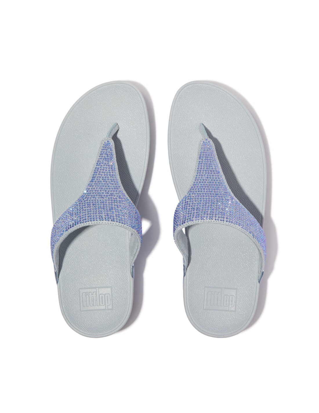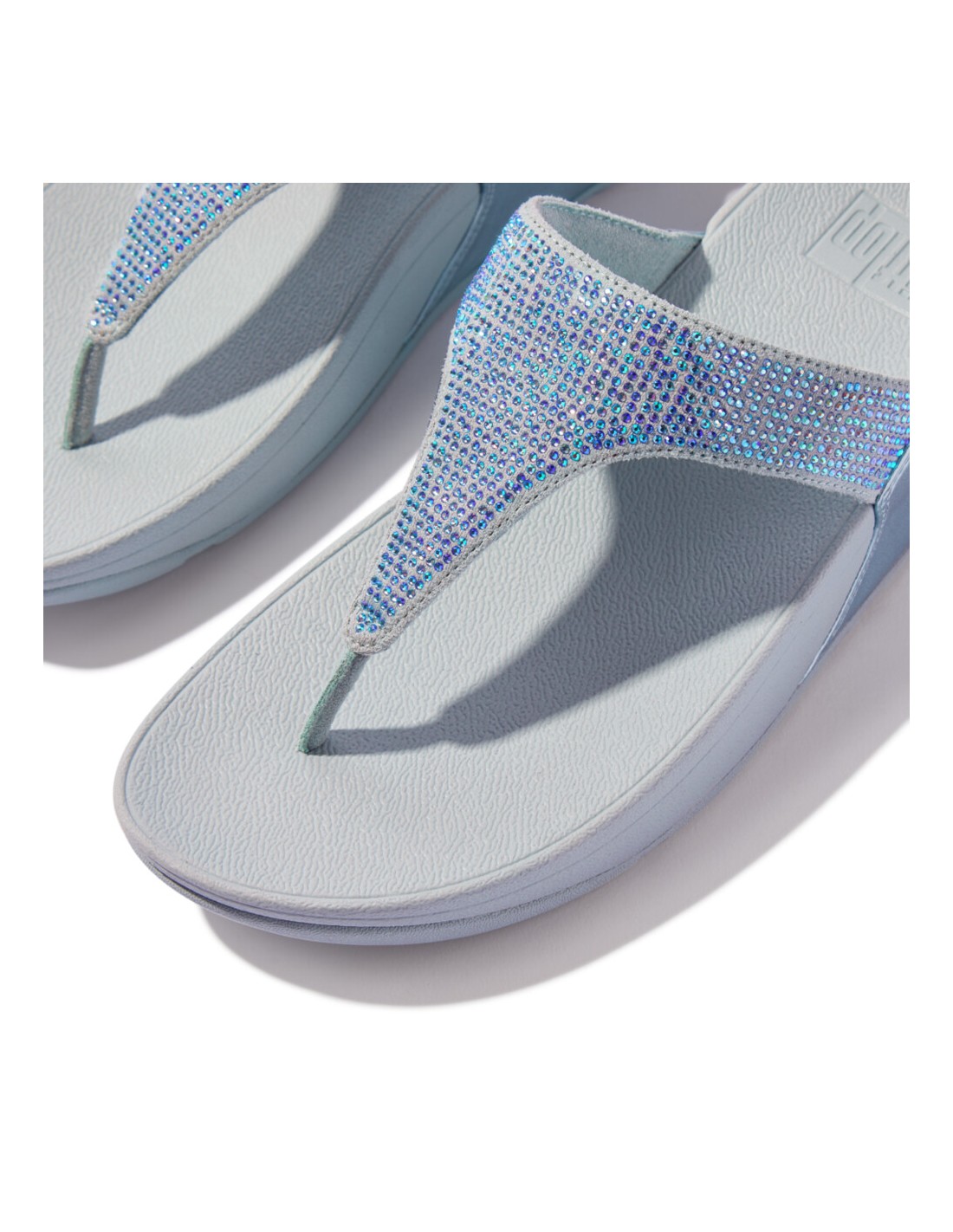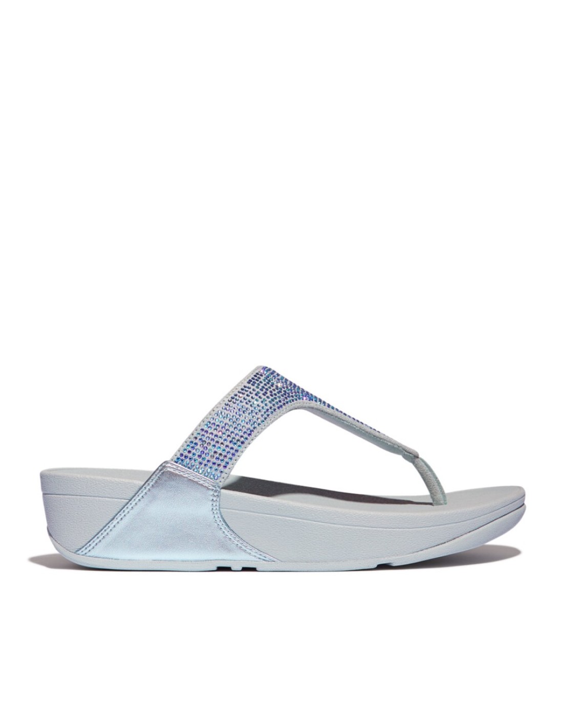 Descripción: Cómoda chancla mujer FITFLOP LULU CRYSTAL EMBELLISHED THOE POPST entre dedos en elegante tejido cekeste con pedrería. Tecnología de entresuela Microwobbleboard, que ayuda a difundir la presión bajo los pies.