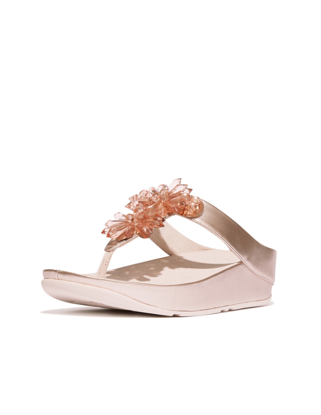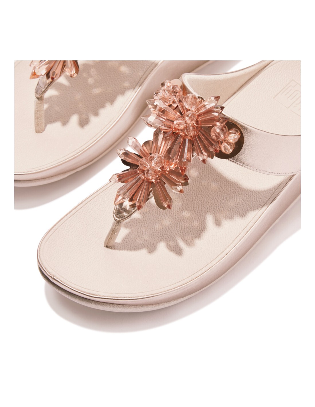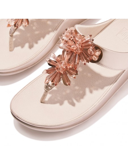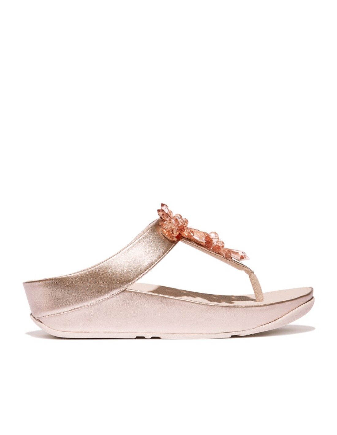 Descripción: Cómoda chancla mujer FITFLOP RUMBA STARBURST-BEAD TOE POST entre dedos en suave tejido metalizado rose-nude con detalle pedrería. Tecnología de entresuela Microwobbleboard amortiguadora, que ayuda a repartir la presión en el pie.