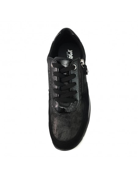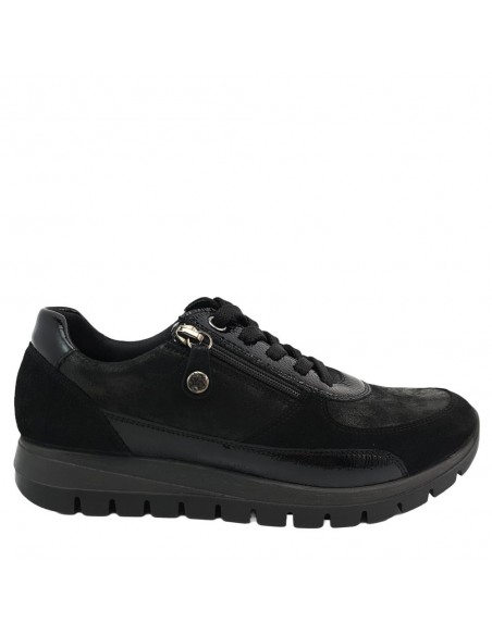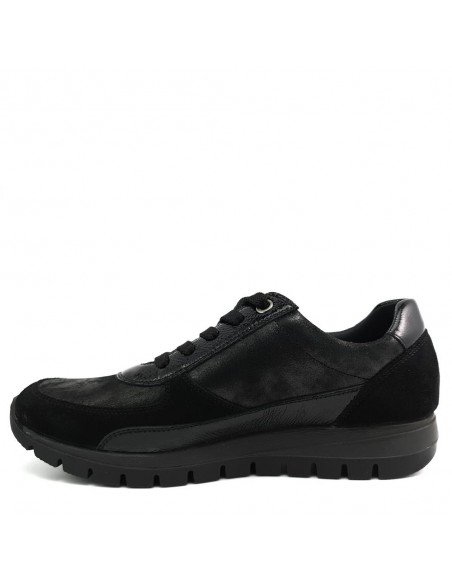 Descripción: Elegante deportivsa mujer IMAC 257540 mujer en suave nubuck negro con un toque metalizado y detalle en charol y serraje. Cómodo piso de poliuretano inyectado ligero y flexible. Elegante y cómoda todo el día.