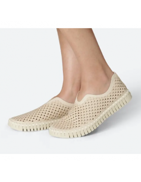 Descripción: Deportiva mujer Ilse Jacobsen TULIP 3275 en fresca micro fibra reciclada perforada beig. Cómoda y original suela flexible de caucho natural cosida a la micro fibra, sin pegamento.