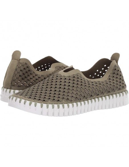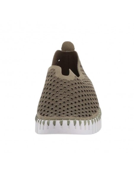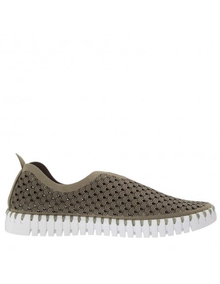 Descripción: Deportiva mujer Ilse JacobsenTULIP 3275 en fresca microfibra reciclada perforada kaki. Cómoda y original suela flexible de caucho natural cosida a la microfibra, sin pegamento.