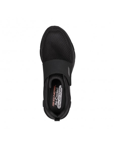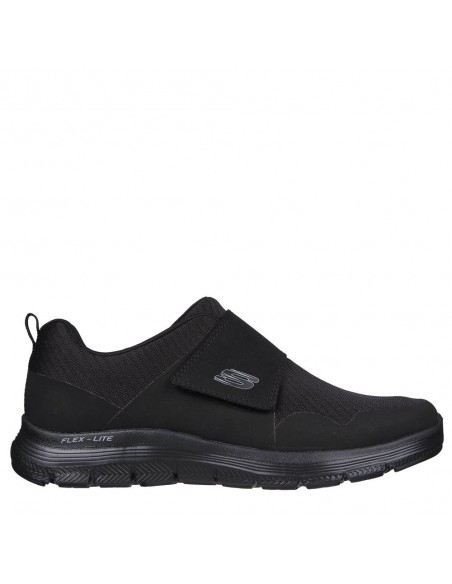 Descripción: Deportiva hombre Skechers FLEX ADVANTAGE-4 UPSHIFT de suave tejido negro con refuerzos, cuello acolchado y ajuste con velcro. Plantilla Air Coled Memory Foam. Suela ligera con tecnología FlexSole amortiguadora.
