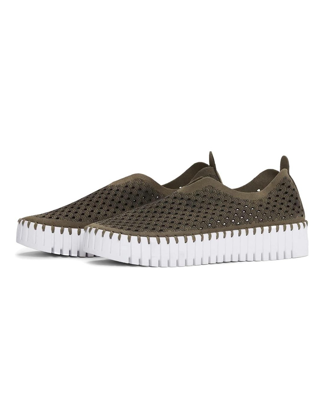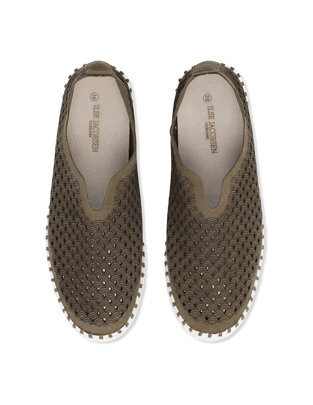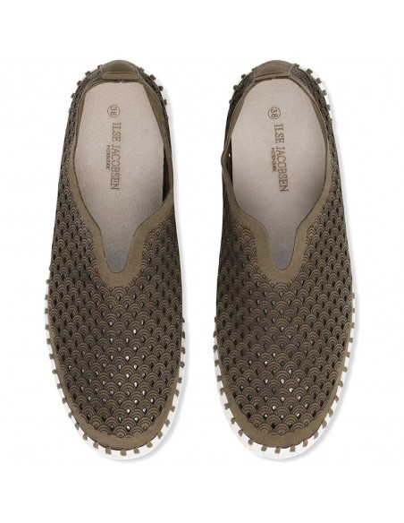 Descripción: Deportiva mujer Ilse JacobsenTULIP 3373 en fresca microfibra reciclada perforada kaki. Cómoda y original suela CON PLATAFORMA flexible de caucho natural cosida a la microfibra, sin pegamento.