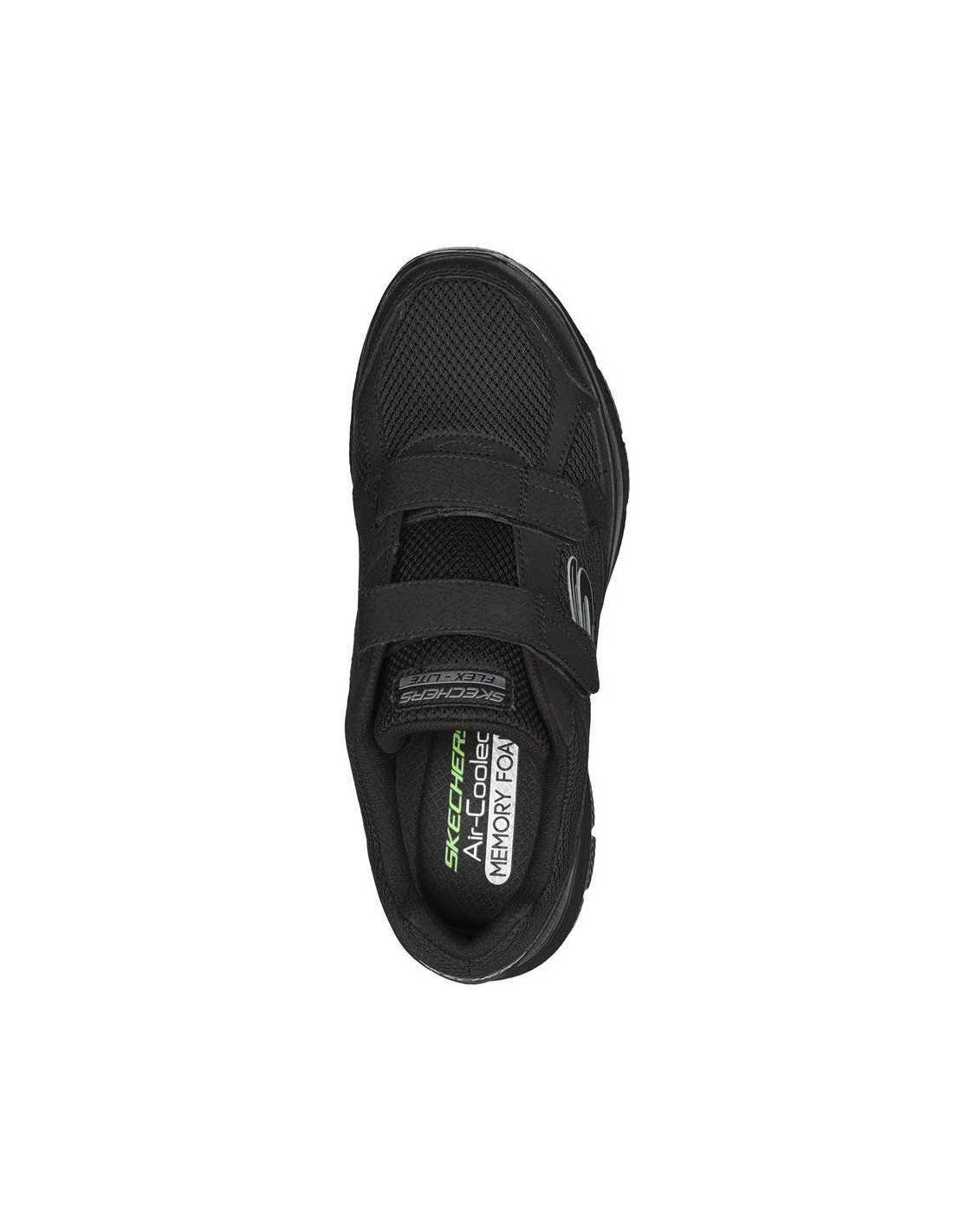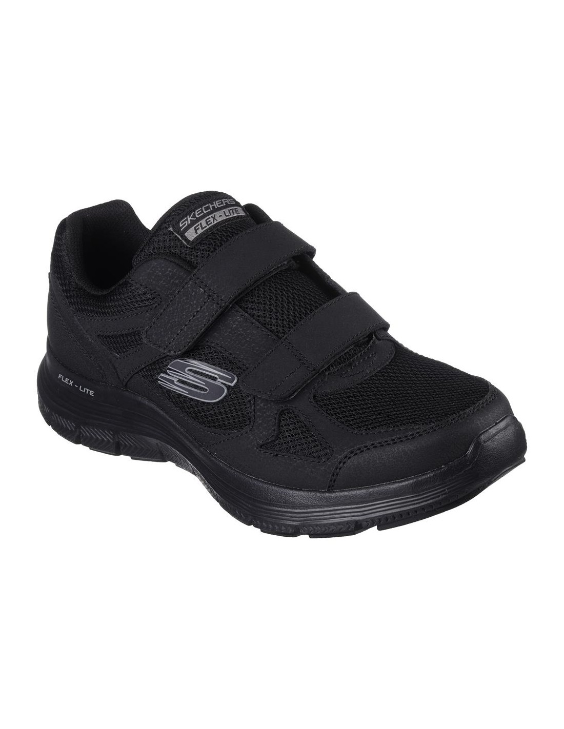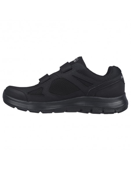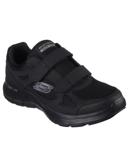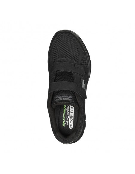 Descripción: Deportiva hombre Skechers FLEX ADVANTAGE-4 FORTNER de suave tejio negro con refuerzos, cuello acolchado y ajuste con velcros. Plantilla Air Coled Memory Foam. Suela ligera con tecnología FlexSole amortiguadora.