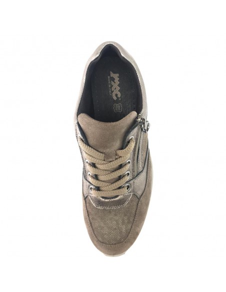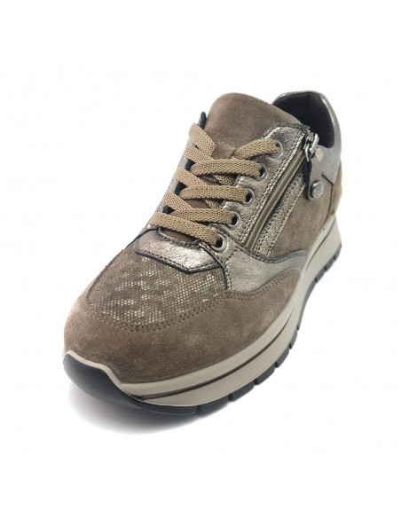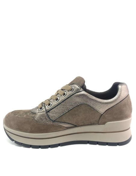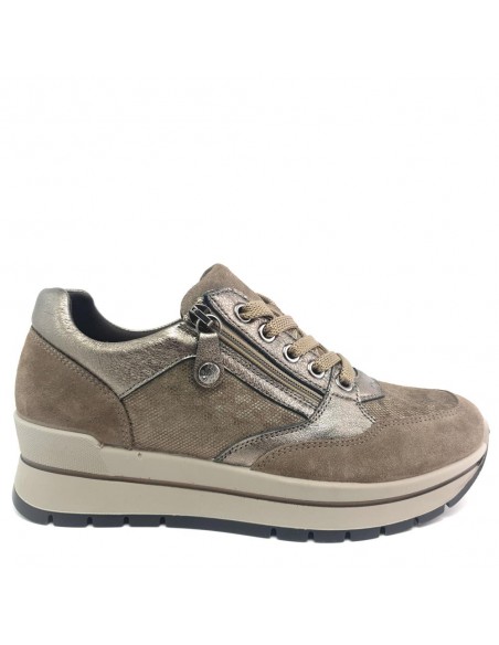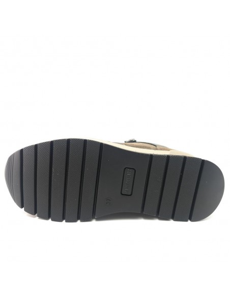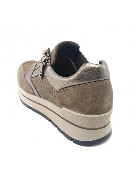 Descripción: Deportiva mujer IMAC 457399 mujer en suave piel beig metalizada con refuerzos nubuck . Ajuste con cremallera. Cómodo piso de poliuretano ligero y antideslizante. Elegante y cómoda todo el día.