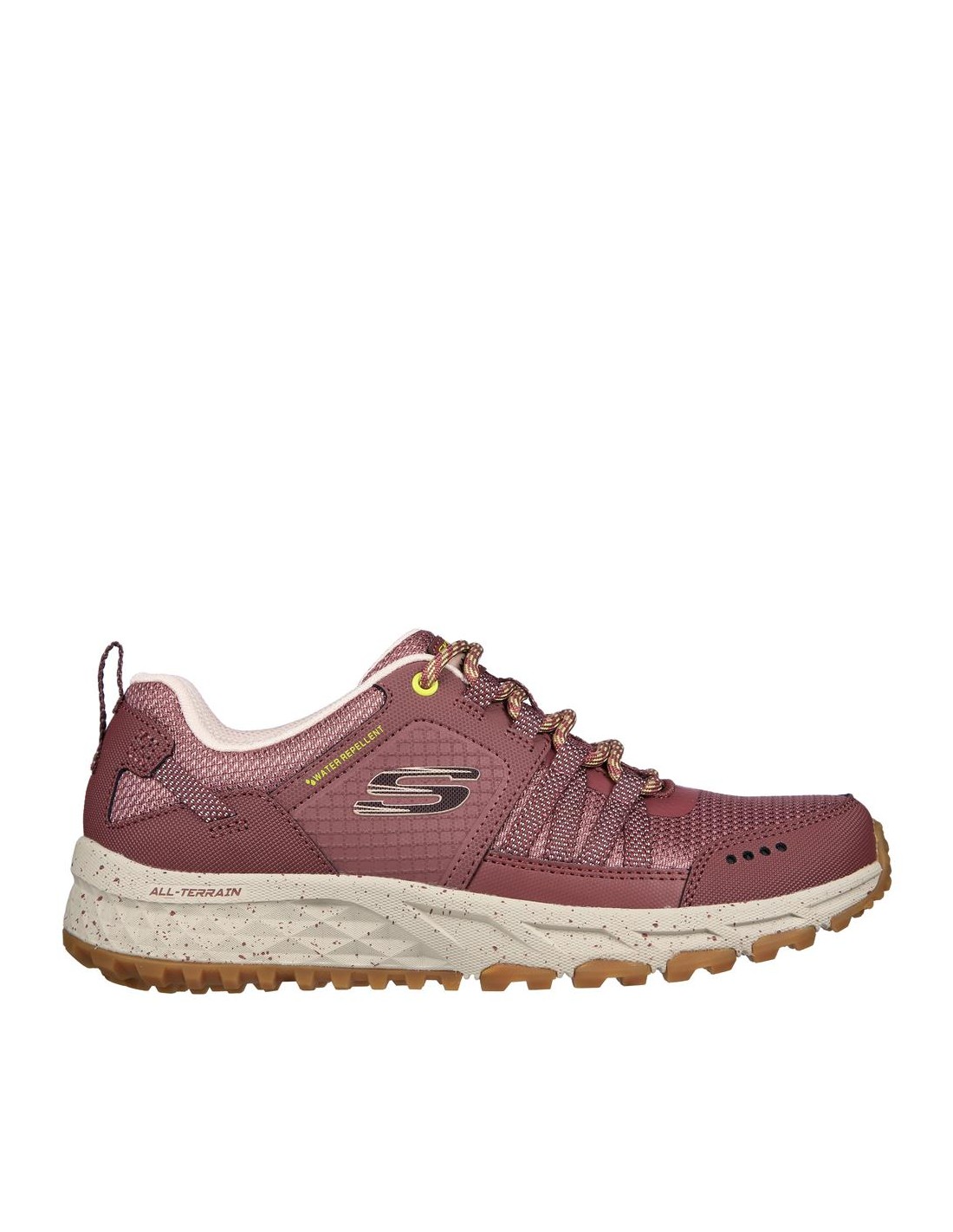 Descripción: Deportiva mujer para caminar Skechers ESCAPE PLAN-ENDLESS PURSUIT en malla con refuerzos malva repelente al agua. Plantilla Air Coled Memory Foam. Piso flexible y ligero con amortiguación antideslizante.