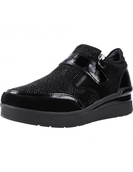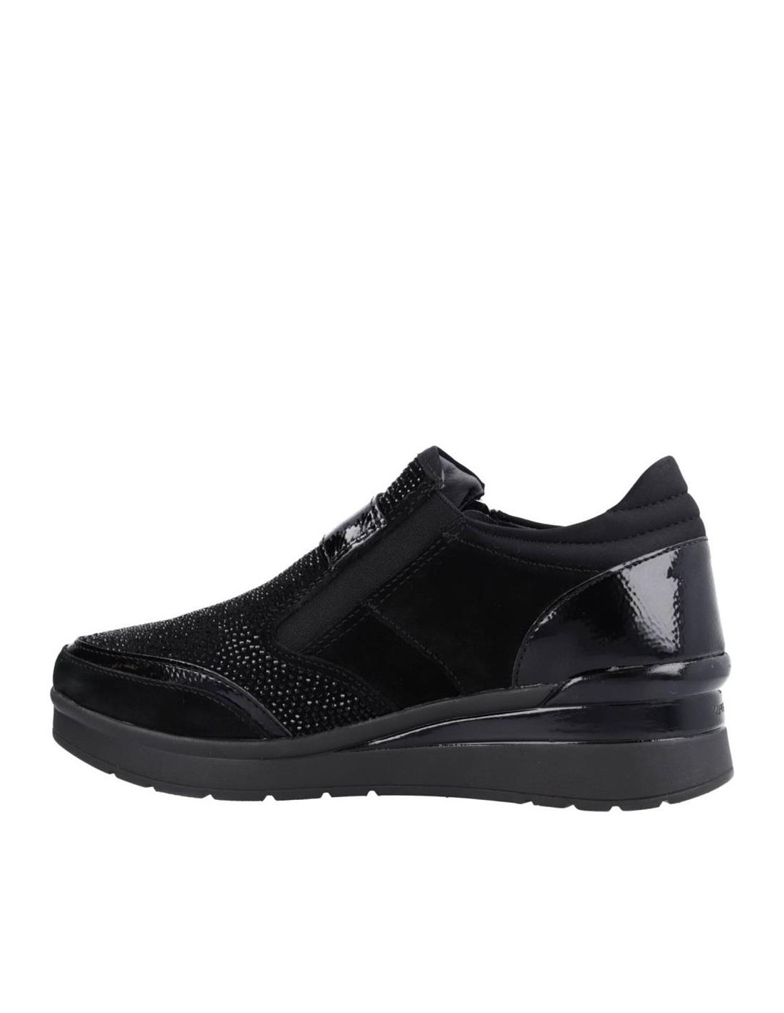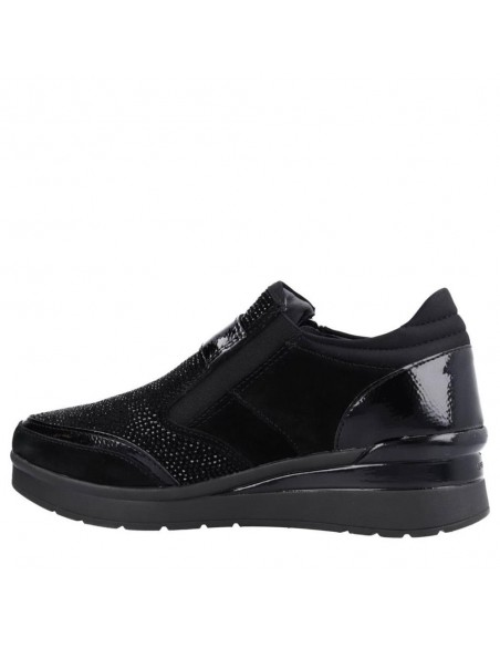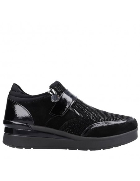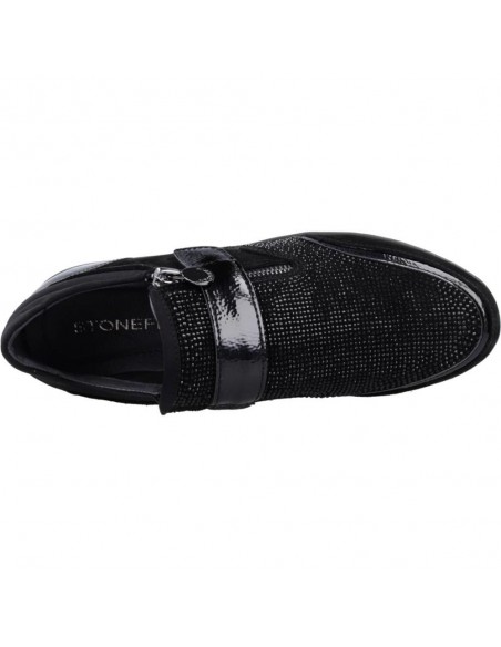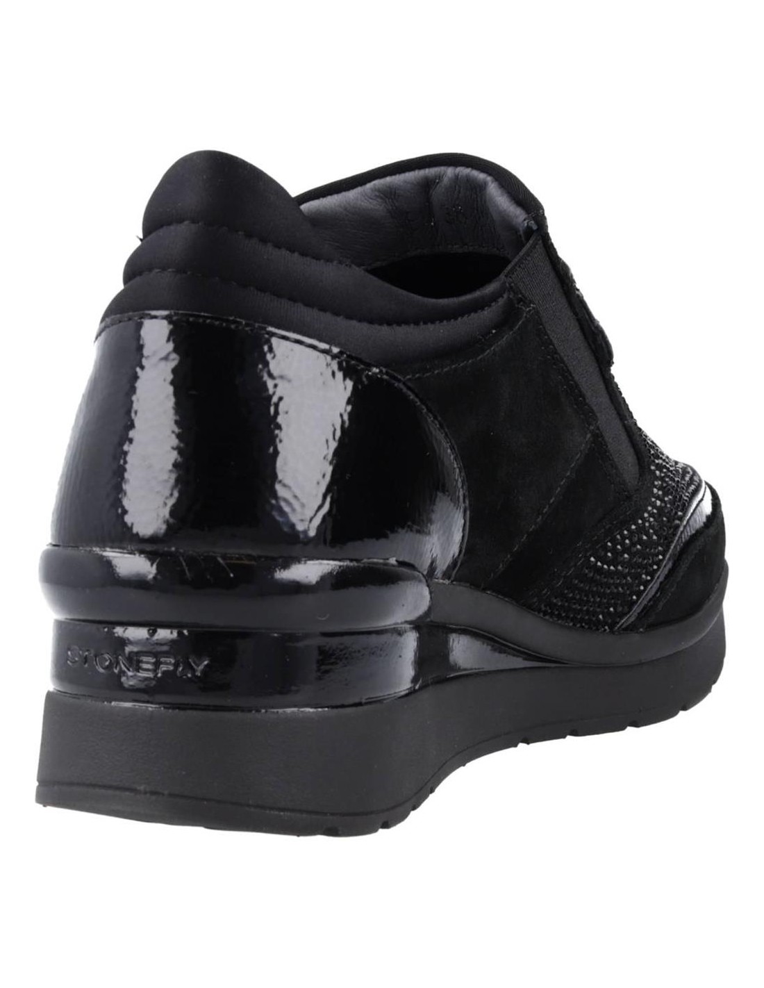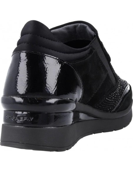 Descripción: Cómoda y elegante deportiva mujer de Stonefly CREAM-48 en suave nubuck negro y detalles charol y pedrería. Ajuste con cremallera. Ligera cuña con tecnología BLUSOFT que garantiza una amortiguación perfecta.