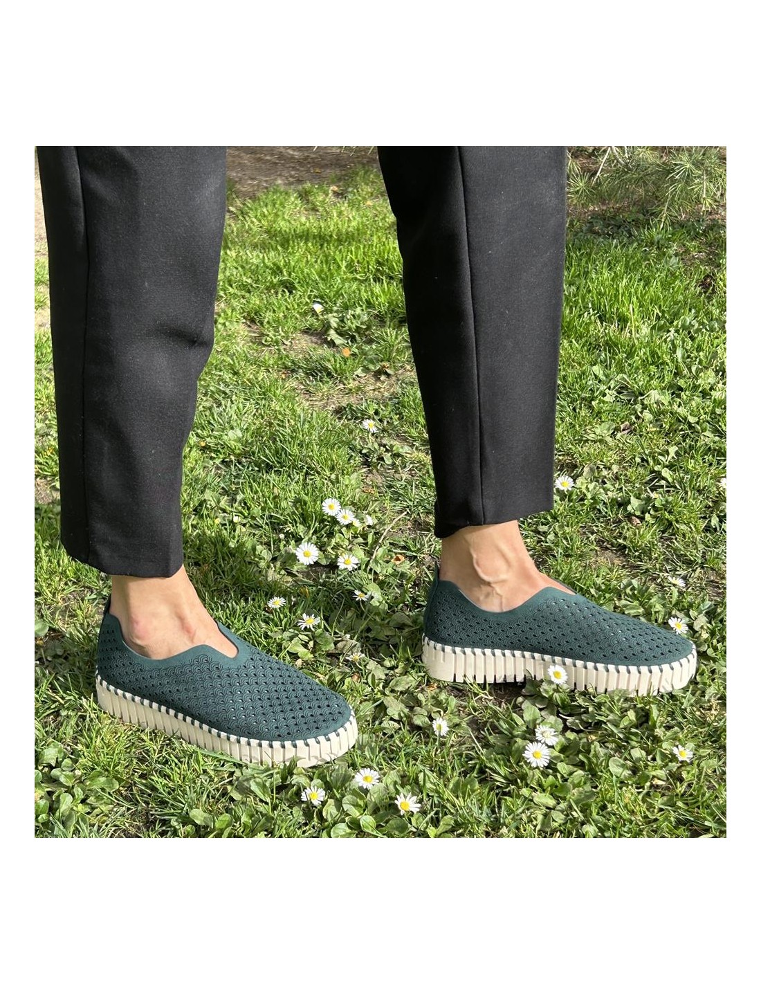 Descripción: Deportiva mujer Ilse JacobsenTULIP 3373 en fresca microfibra reciclada perforada tono kaki. Cómoda y original suela CON PLATAFORMA flexible de caucho natural cosida a la microfibra, sin pegamento.