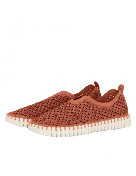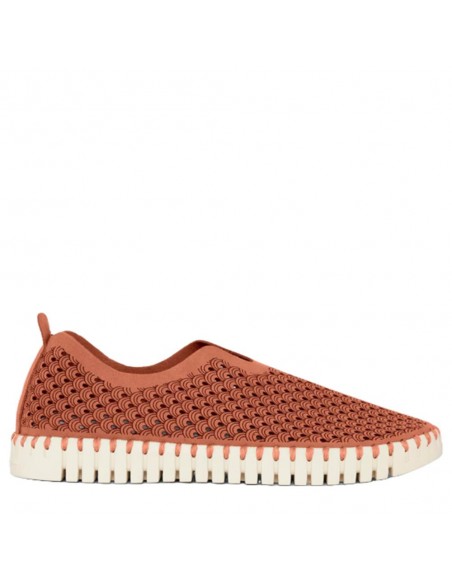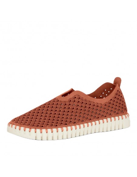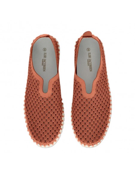 Descripción: Deportiva mujer Ilse JacobsenTULIP 3275 en fresca microfibra reciclada perforada tono teja. Cómoda y original suela flexible de caucho natural cosida a la microfibra, sin pegamento.