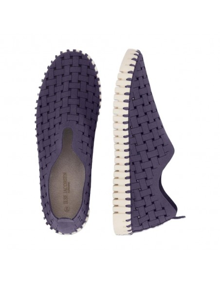 Descripción: Deportiva mujer Ilse JacobsenTULIP 4030 en fresaca microfibra reciclada perforada azul tejano. Cómoda y original suela flexible de caucho natural cosida a la microfibra, sin pegamento.