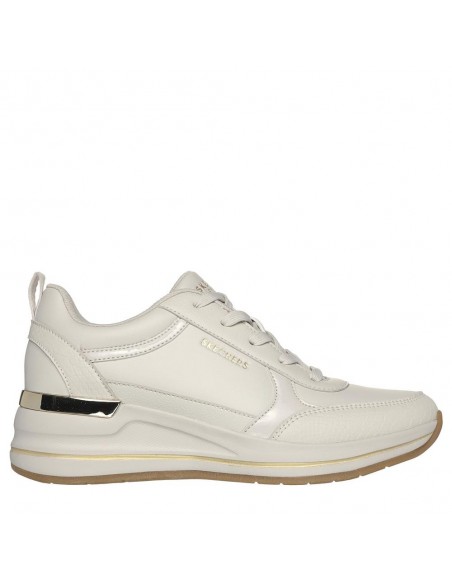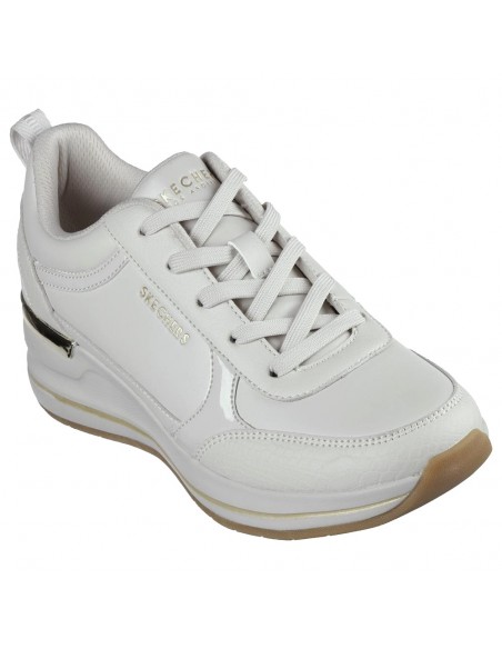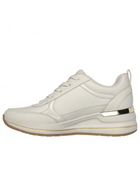 Descripción: Deportiva mujer BILLION - FINE SHINE en tejido ofwhite tacto piel con refuerzos en serraje. Plantilla de confort SKECHERS Air Cooled Memory Foam® Cómoda y elegante cuña con patín de goma antideslizante.
