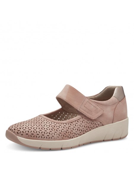 Descripción: Deportiva mujer con CERTIFICADO VEGANO 24644 de Jana en suave tejido aspecto nubuck perforado rosa. Ajuste en el empeine con tira de velcro. Plantilla acolchada. Ligera y cómoda cuña flexible y antideslizante.