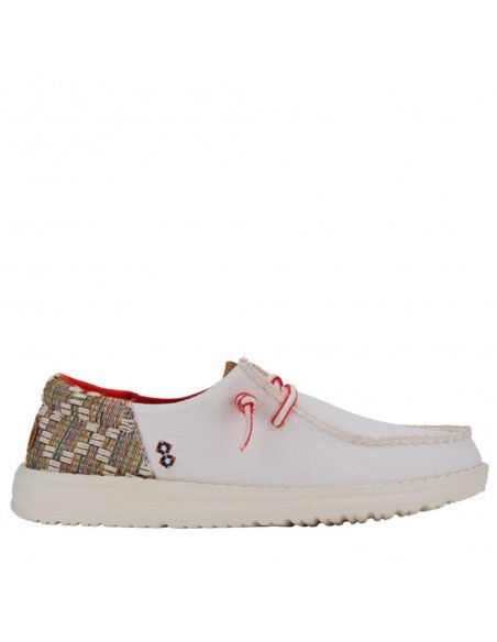 Descripción: Blucher deportivo mujer HEY DUDE WENDY FUNK en tejido fresco bleig con talonera multicolor. Cordones elásticos. Plantilla ergonómica extraíble de viscoelástica, forrada en piel. Piso ligero de EVA (165 gr)
