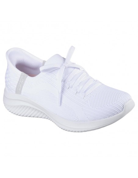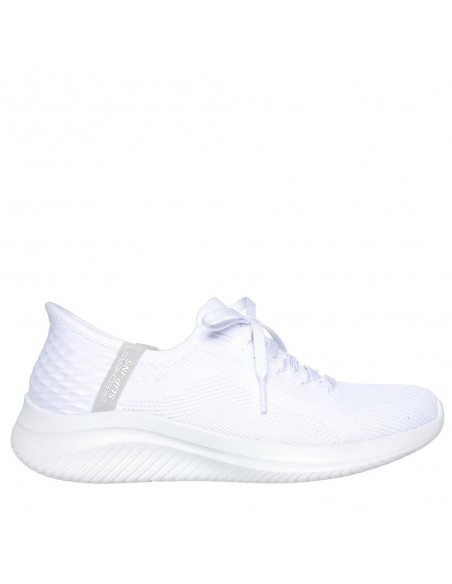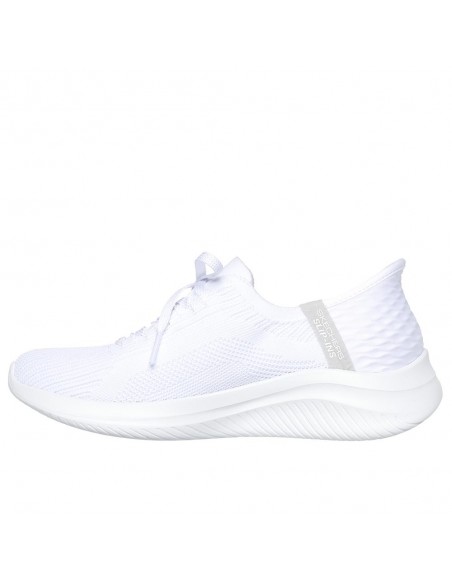Descripción: Deportiva mujer Skechers SLIP-INS ULTRA FLEX 3.0-BRILLIANT PATH de suave y cómodo tejido knit blanco Strech Fit. Diseño para calzar sin manos Comfort Pillow en el talón. Plantilla amortiguadora Air Coled Memory Foam.