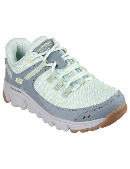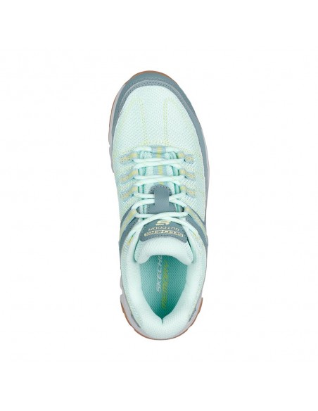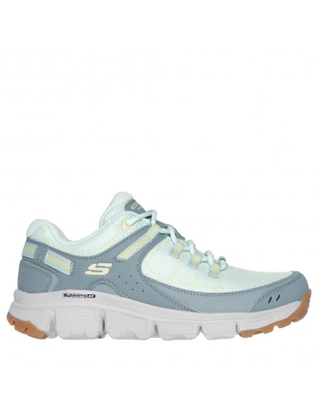 Descripción: Deportiva mujer senderismo Skechers SUMMITS AT - ARTISTS BLUFF en malla resistente repelente al agua kaki con refuerzos. Plantilla Air Coled Memory Foam. Piso flexible amortiguador y antideslizante.