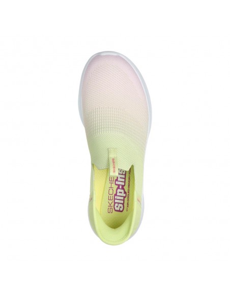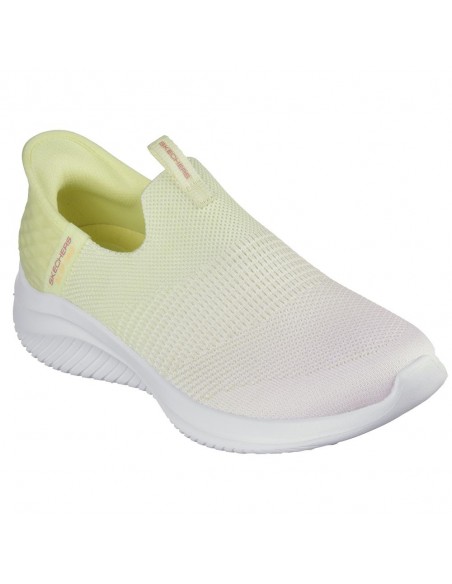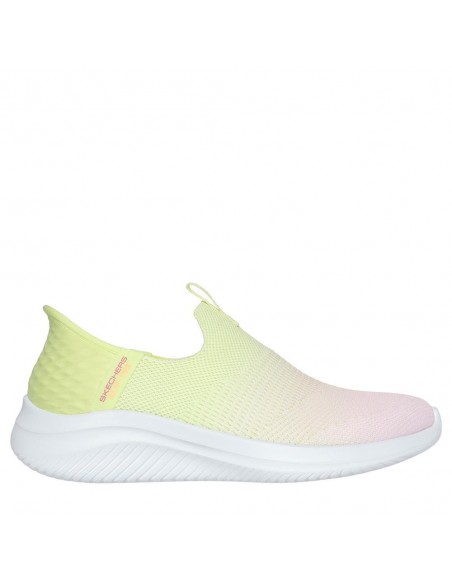 Descripción: Deportiva mujer Skechers SLIP-INS ULTRA FLEX 3.0 - BEAUTY BLEND de suave y cómodo tejido knit Strech Fit amarillo difuminado. Diseño para calzar sin manos Comfort Pillow en el talón. Plantilla Air Coled Memory Foam.
