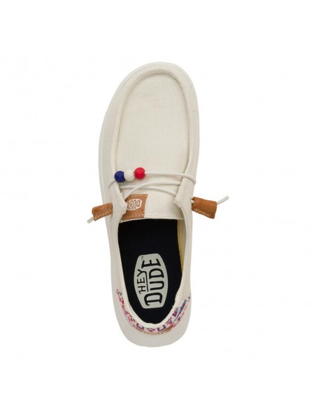 Descripción: Deportiva mujer HEY DUDE WENDY PEAK LO en suave tejido blanco y talonera con bordado . Cordones elásticos. Plantilla ergonómica extraíble viscoelástica. Plataforma ligera de EVA (165 gr)