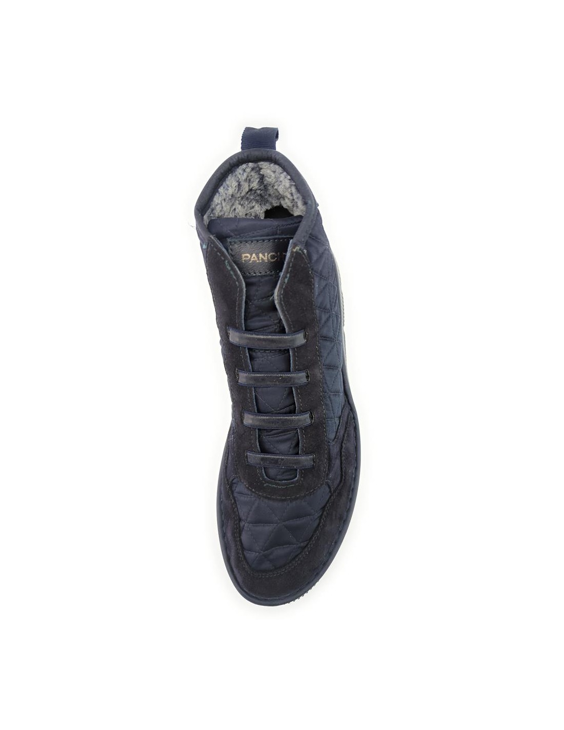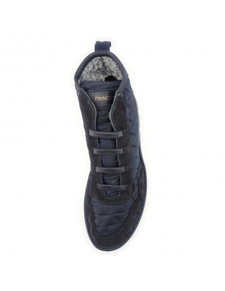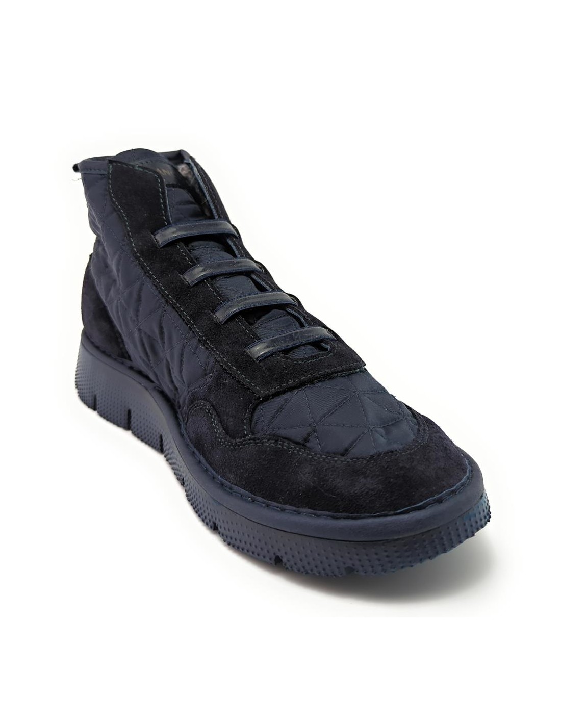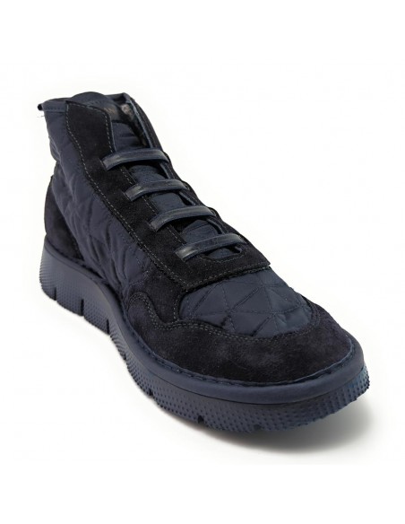 Descripción: Deportivo abotinado italiano de fabricación artesana para hombre de Panchic nueva línea P05 suave naylon acolchado azul refuerzos en serraje. Cordones elásticos. Cómodo piso flexible, ligero y antdeslizante.