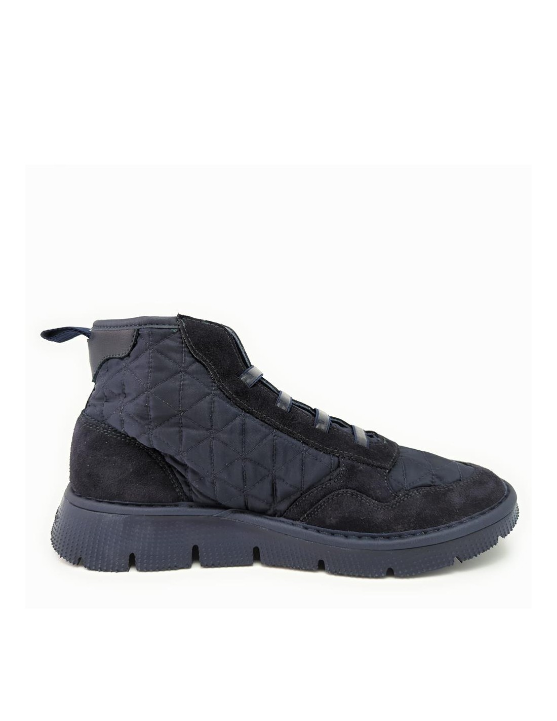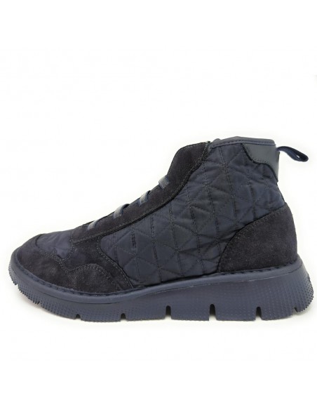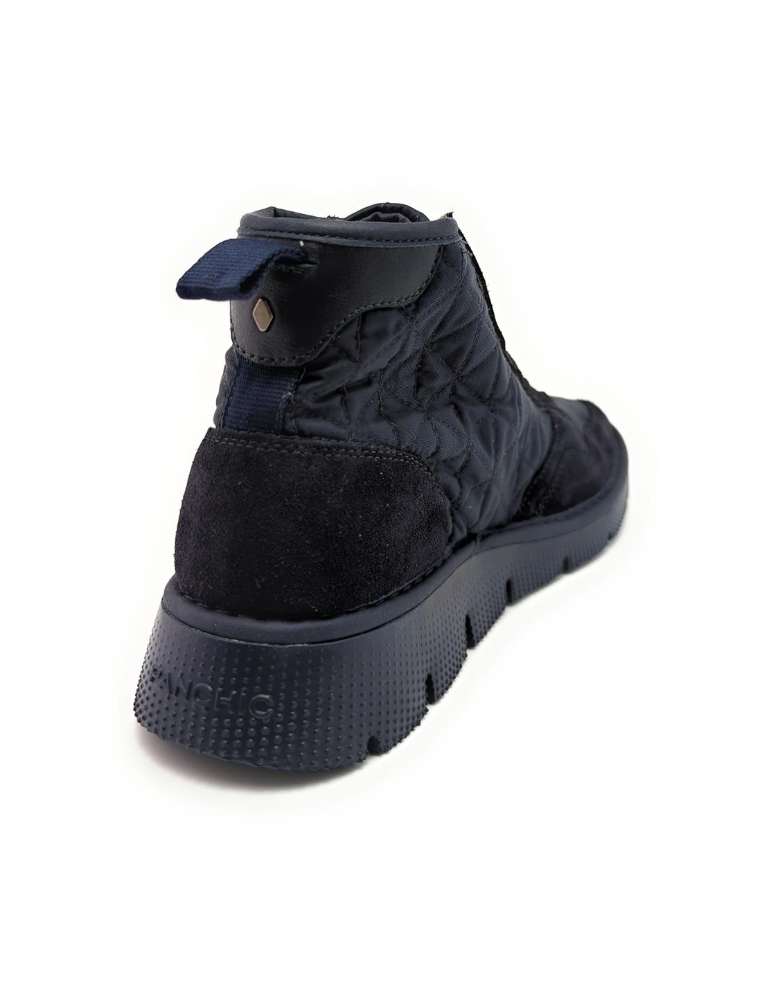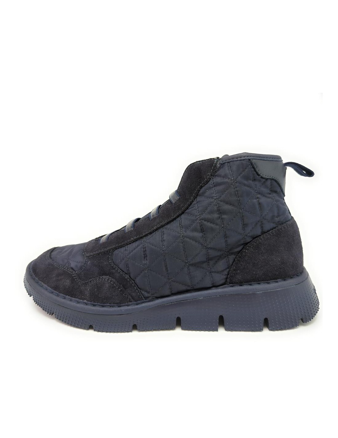 Descripción: Deportivo abotinado italiano de fabricación artesana para hombre de Panchic nueva línea P05 suave naylon acolchado azul refuerzos en serraje. Cordones elásticos. Cómodo piso flexible, ligero y antdeslizante.