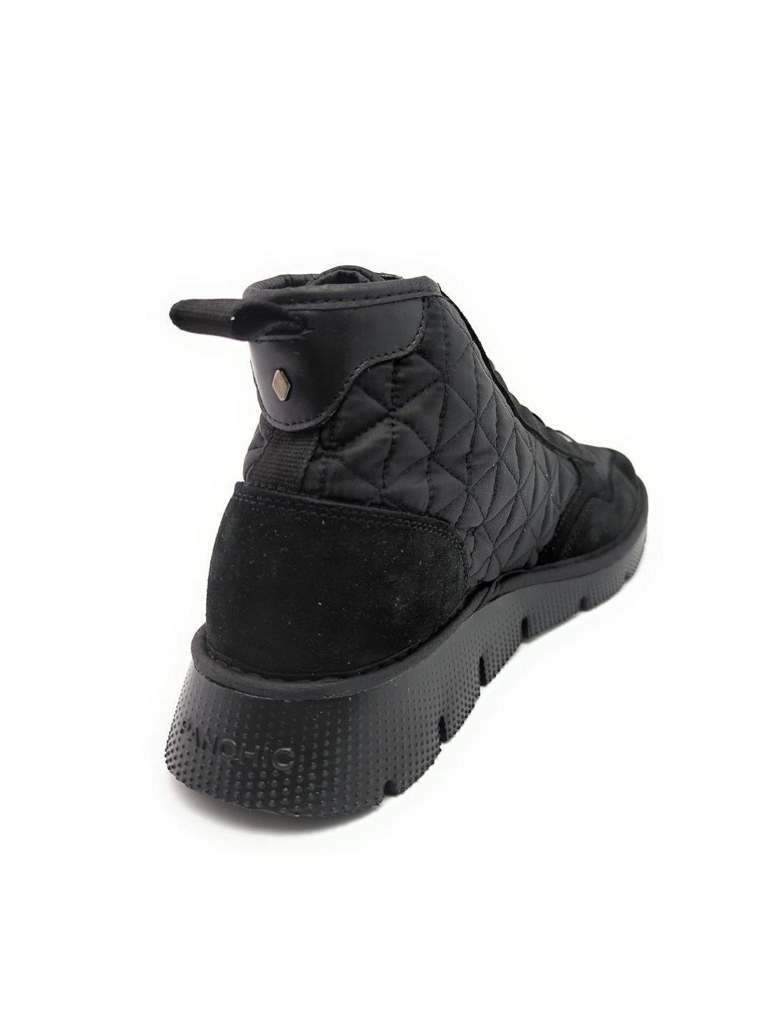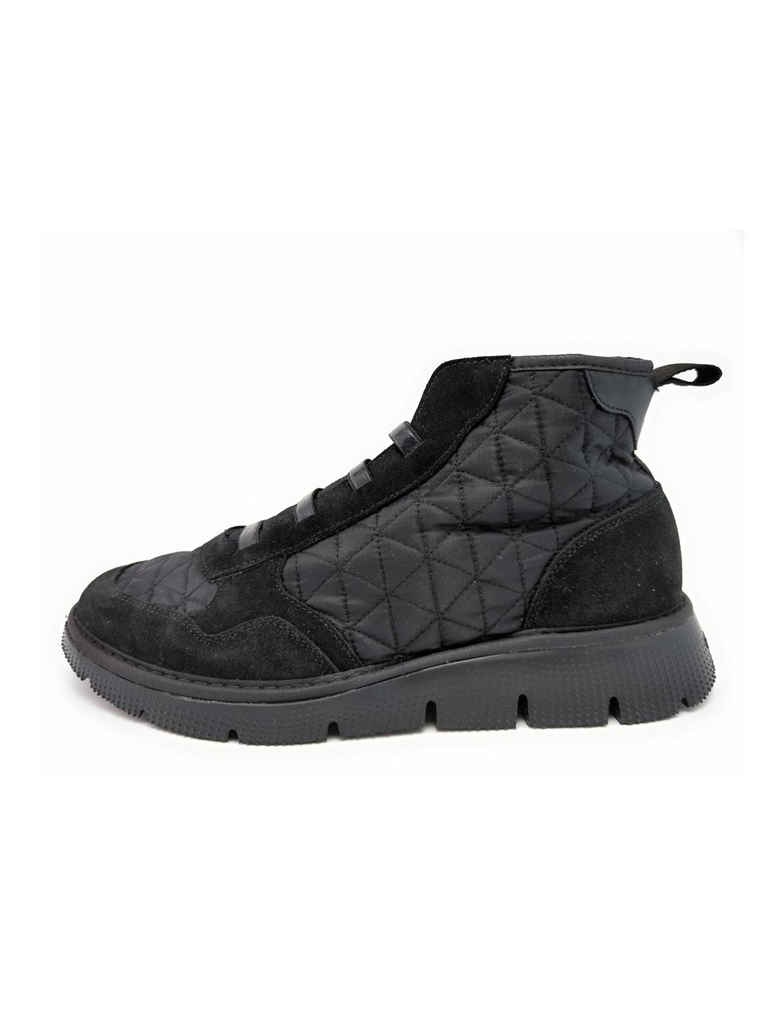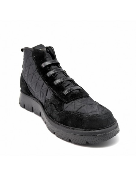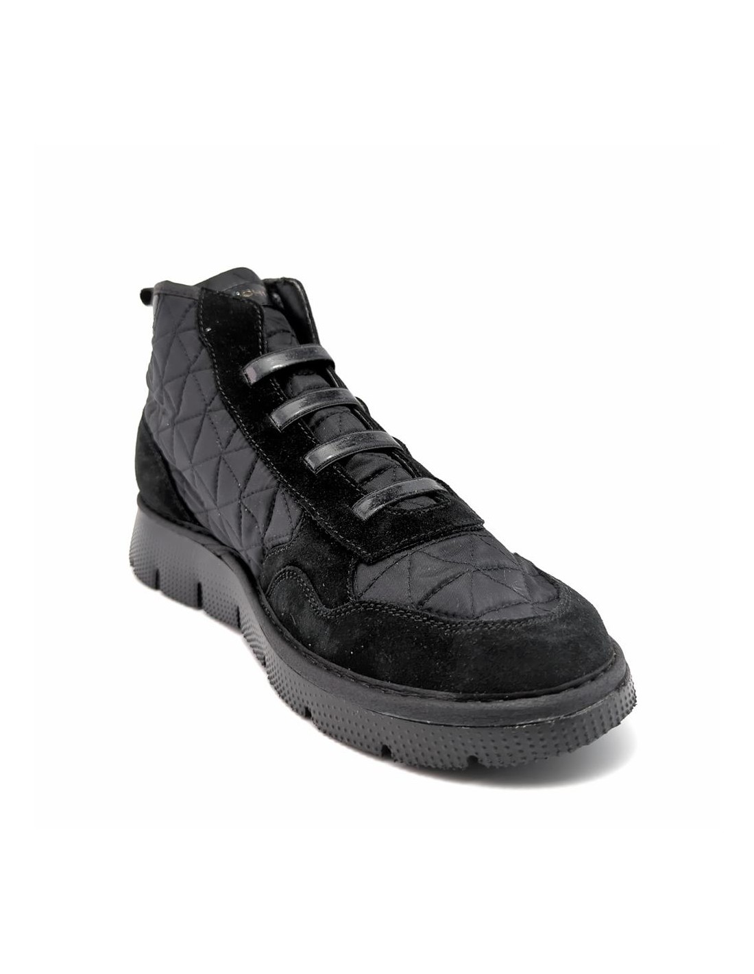 Descripción: Deportivo abotinado italiano de fabricación artesana para hombre de Panchic nueva línea P05 suave naylon acolchado negro refuerzos en serraje. Cordones elásticos. Cómodo piso flexible y ligero.