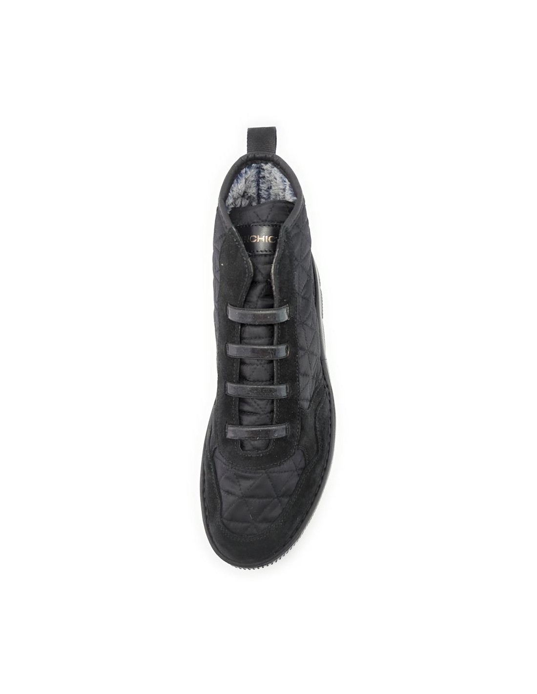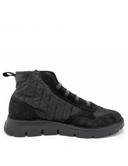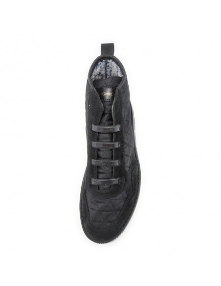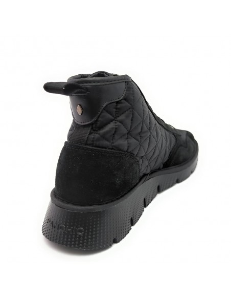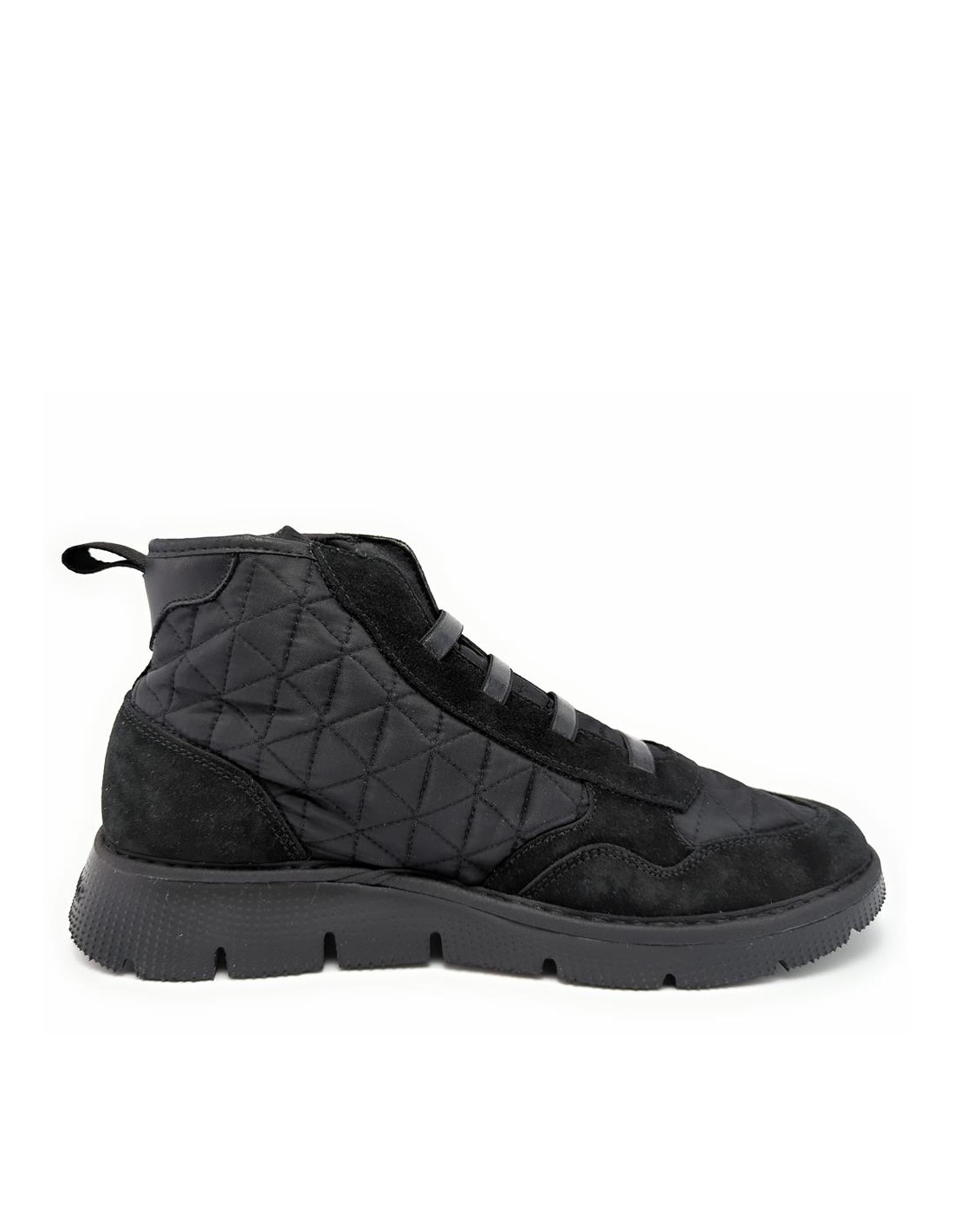 Descripción: Deportivo abotinado italiano de fabricación artesana para hombre de Panchic nueva línea P05 suave naylon acolchado negro refuerzos en serraje. Cordones elásticos. Cómodo piso flexible y ligero.