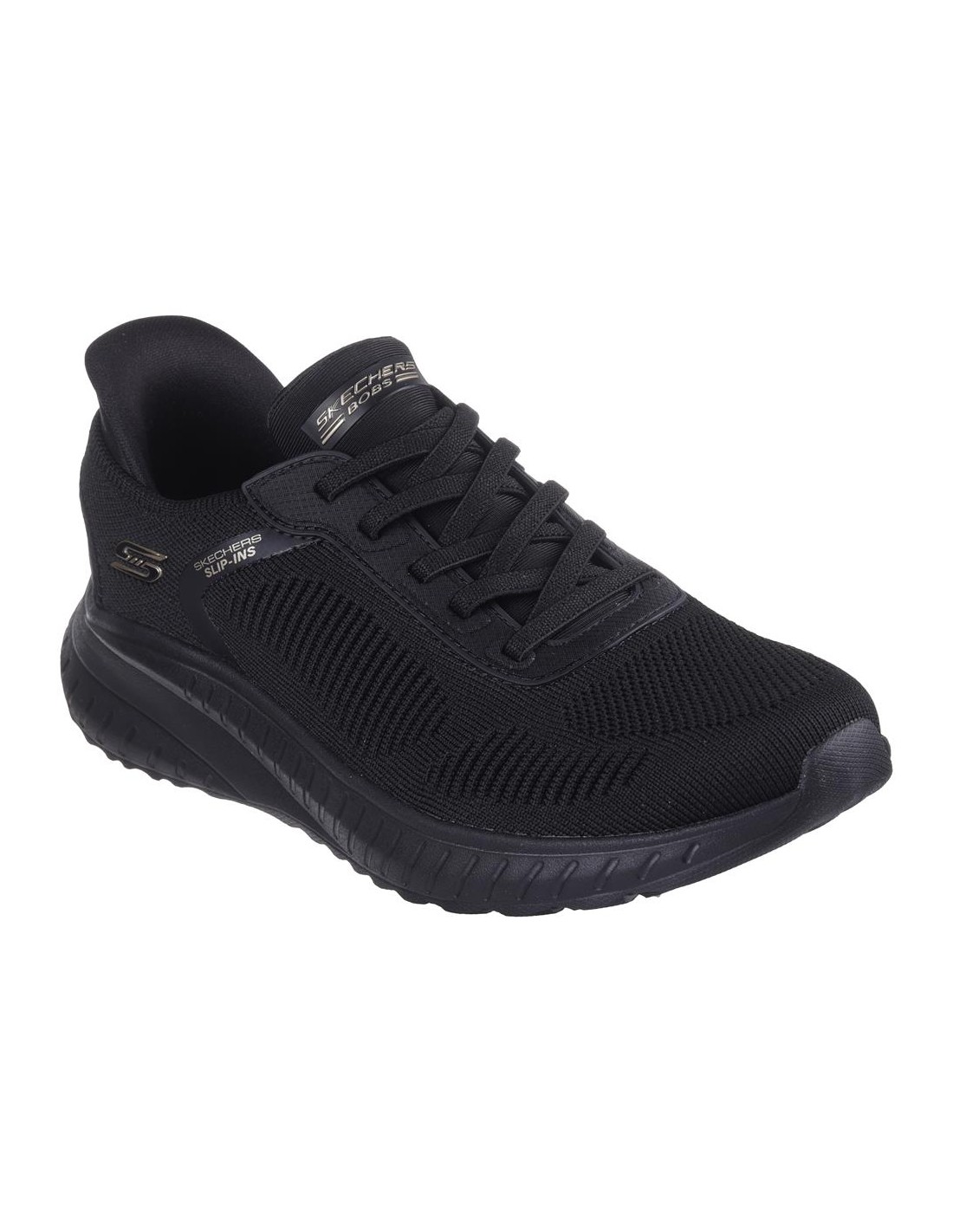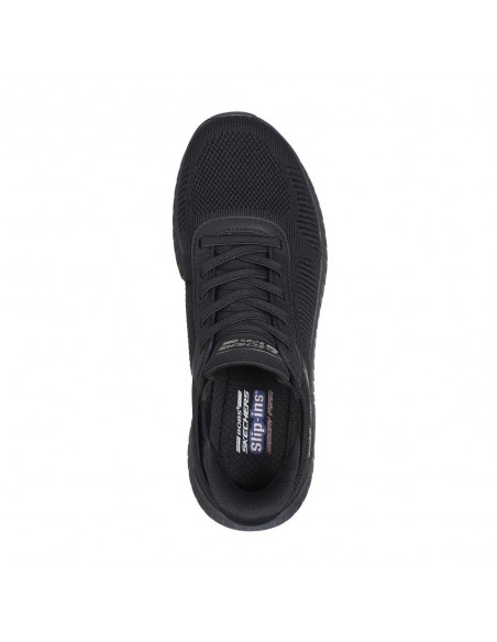 Descripción: Deportiva mujer Skechers SLIP-INS BOBS SQUAD CHAOS de suave y cómodo tejido negro. Diseño para calzar sin manos Comfort Pillow en el talón. Plantilla amortiguadora Air Coled Memory Foam