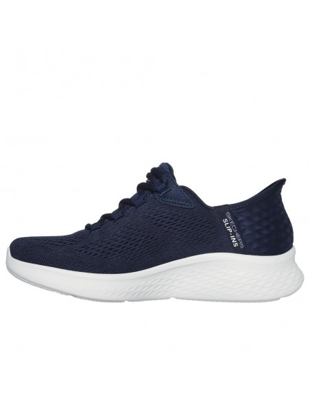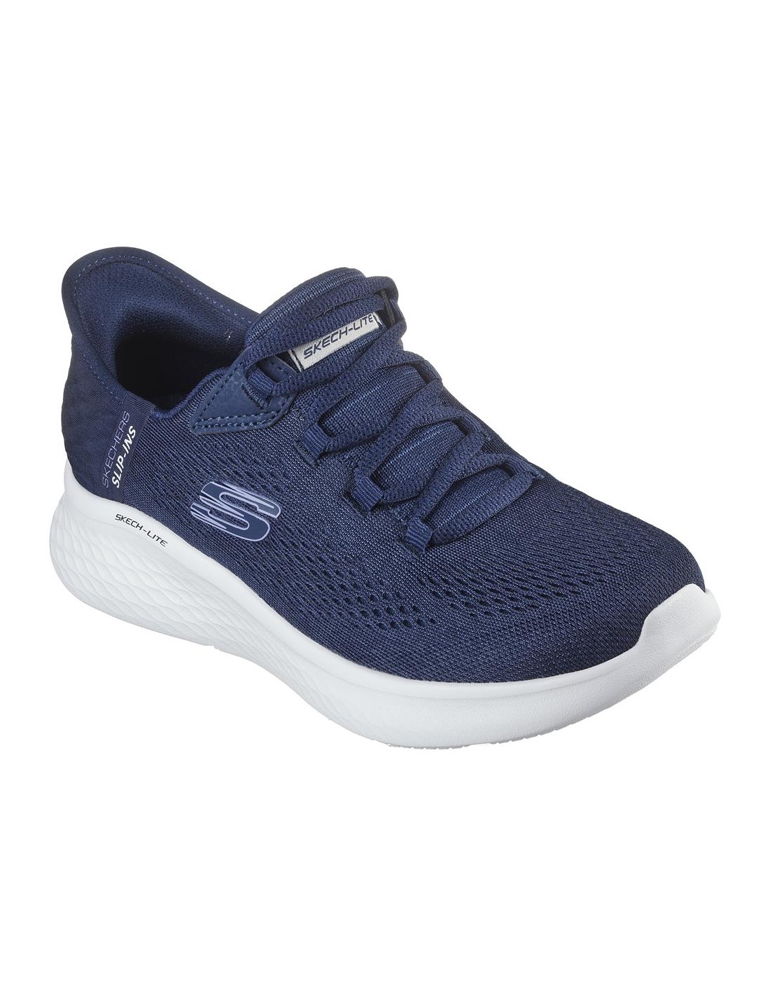 Descripción: Deportiva mujer Skechers SLIP-INS SKECH-LITE PRO - NATURAL BEAUTY de suave y cómodo tejido knit azul. Strech Fit. Diseño para calzar sin manos Comfort Pillow en el talón. Plantilla amortiguadora Air Coled Memory Foam