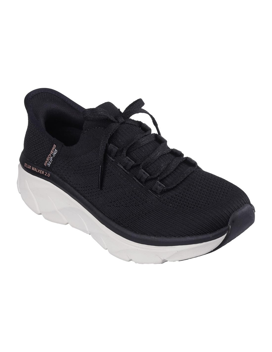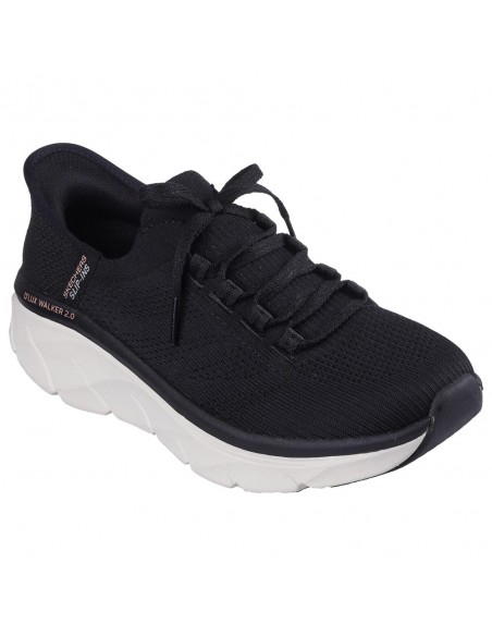 Descripción: Deportiva mujer Skechers SLIP-INS D'LUX WALKER 2.0 - THRILL MOVEMENT de suave tejido negro. Relaxed Fit®, más espaciosa en la puntera y el ante pie. Heel Pillow en el talón para calzar sin manos. Plantilla Air Coled Memory Foam.