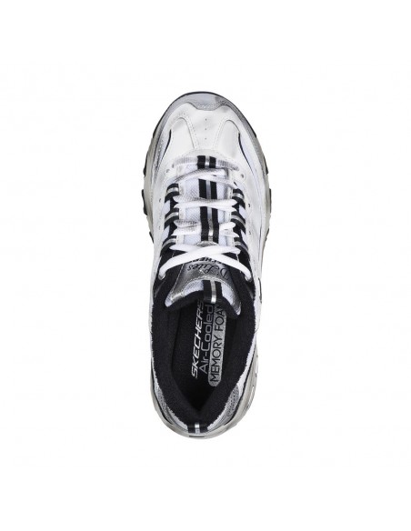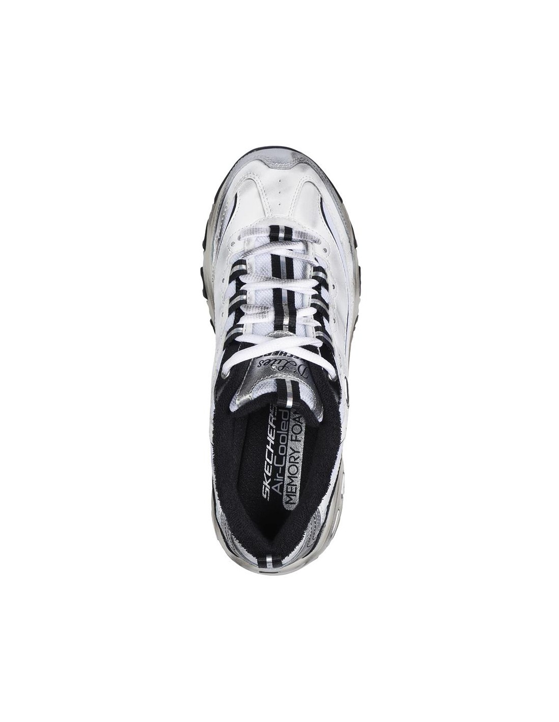 Descripción: Deportiva mujer clásica de Skechers D'LITES VINTAGE VISION en piel blanca y detalles en negro. Suela bicolor flexible y ligera de caucho. Plantilla Air Cooled Memory-Foam. Entre suela amortiguadora