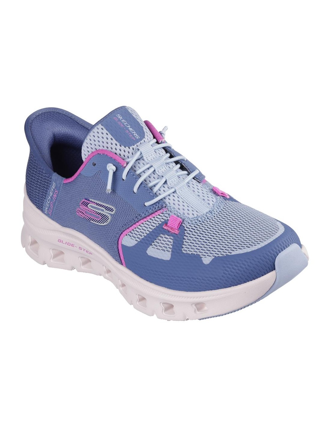 Descripción: Deportiva mujer Skechers SLIP-INS GLIDE-STEP® PRO de suave y cómodo tejido azul con refuerzos. Diseño para calzar sin manos Heel Pillow Plantilla Air Coled Memory Foam. Amortiguación Glide-Step®