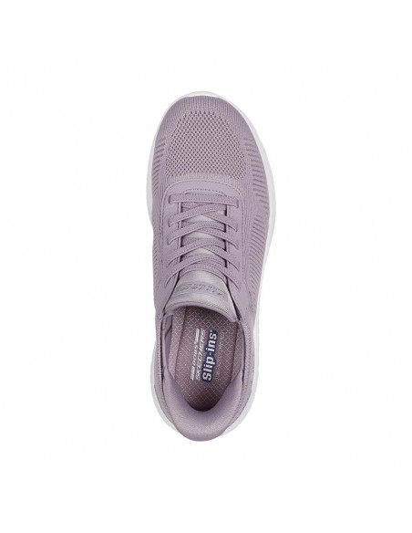 Descripción: Deportiva mujer Skechers SLIP-INS BOBS SQUAD CHAOS de suave y cómodo tejido tono lavanda. Diseño para calzar sin manos Comfort Pillow en el talón. Plantilla amortiguadora Air Coled Memory Foam
