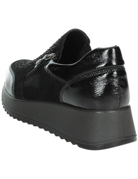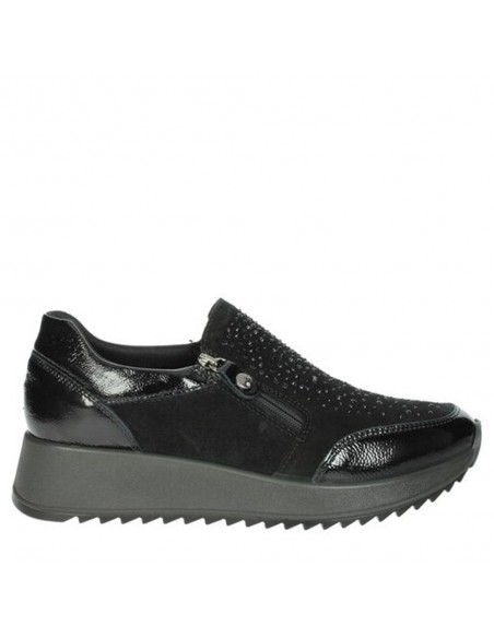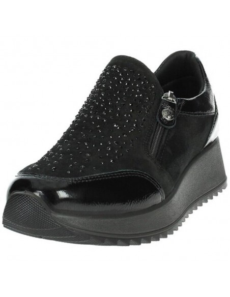 Descripción: Deportiva urbana mujer IMAC 657610 mujer en nubuck negro con detalles de pedrería. Ajuste con cremallera lateral. Cómodo piso de poliuretano inyectado ligero, flexible y antideslizante. Elegante y cómoda todo el día.