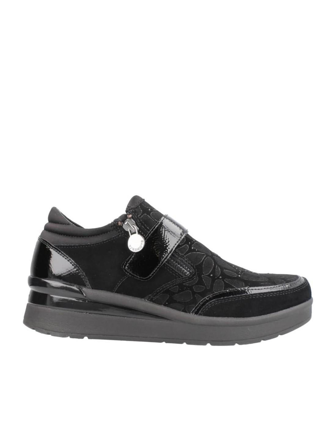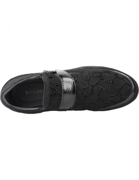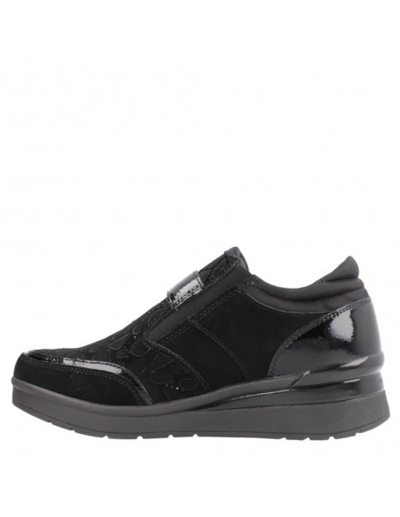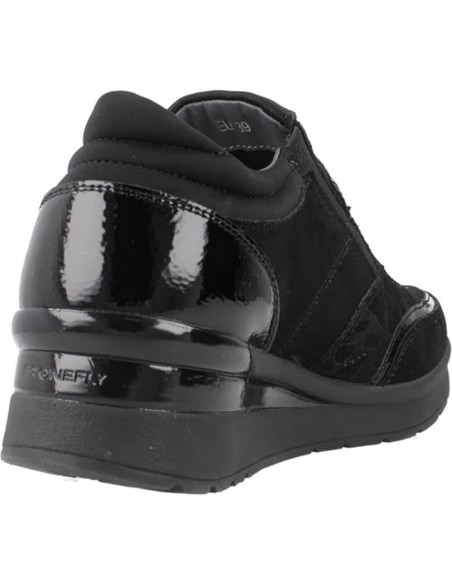 Descripción: Cómoda y elegante deportiva mujer de Stonefly CREAM-48 en suave nubuck negro y detalles charol y pedrería. Ajuste con cremallera. Ligera cuña con tecnología BLUSOFT que garantiza una amortiguación perfecta.